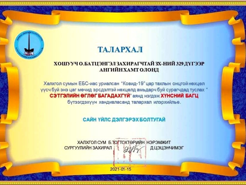 ЕРӨНХИЙ БОЛОВСРОЛЫН СУРГУУЛИЙН СУРАГЧДАД СЭТГЭЛИЙН ХАНДИВ ӨРГӨЛӨӨ