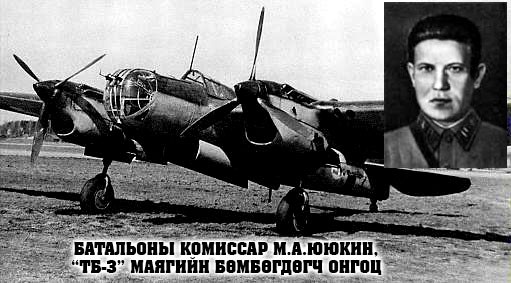 Долдугаар сарын 20-ны агаарын тулааны үеэр залуу нисгэгч В.Вуссагийн онгоцыг Японы хоёр сөнөөгч хөөж явахыг ахлах дэслэгч В.Ф.Скобарихин ажиглангуут огцом эргэлт хийж дайсны онгоцны сүүлийг онгоцоороо мөргөлөө. Түүнийг онгоцтойгоо газарт унаад ухаангүй байхад нь нөхөд нь нисэх буудалд авчирсан. Түүний энэ гавьяаг ахмад В.П. Кустов бас давтаж агаарын тараны хоёр дахийг Халхын голд хийсэн. Наймдугаар сарын 4-нд сөнөөгч онгоцны нисгэгч А.Ф.Мошин бас давтлаа. Тэрээр хамаг сумаа дуусгаад байтал дайсны онгоц мөрдөж эхэлсэн. Тэр огцом эргэлтээр дайсны онгоцыг мөргөж унагаад буудалдаа эсэн мэнд эргэж ирсэн. Наймдугаар сарын 4-нд батальоны комиссар М.А.Ююкин байгаа бөмбөгдөөд буцаж явахдаа агаарын их бууны суманд өртжээ. Тэрээр онгоцоо доош уналтаас татан гаргах гэсэн ч дайсны агаарын их бууны суманд оногдон шатаж эхэлсэн онгоц нь жолоодлоггүй болж улам доошоо унасаар байлаа. Ингээд тэрээр эрс шийдэж галд автсан онгоцоо Японы агаарын их бууны батарейны эгц дээрээс нь унагах нь тэр. Дайчин нөхөд нь дайснаас түүнийг өшөөг авах болно гэж андгайлж билээ хэмээн 150-р бөмбөгдөгч онгоцны хорооны үйл ажиллагааны тухай Халхын голын дайнд тус хороонд штурманаар дайтаж явсан Николай Ганин 2005 онд ийнхүү дурсжээ. Хожим нь Халхын голын дайнд тус хороонд алба хааж байсан ахмад Н.Ф.Гастелло Эх орны дайнд комиссар Ююкины баатарлаг үйлсийг давтаж, 1941 оны 6-р сарын 26-ны өдөр байлдааны даалгавар биелүүлэхдээ дайсны зенитын суманд өртөж, шатаж байгаа онгоцоо танк, бензин тээвэрлэгч галт тэрэгний цуваа бүхий фашистын цэргийн бөөгнөрөл рүү чиглүүлж, устгасан тул мөн өдрийн ЗСБНХУ-ын Дээд Зөвлөлийн Тэргүүлэгчдийн зарлигаар түүнд ЗХУ-ын баатар цолыг нэхэн олгожээ.