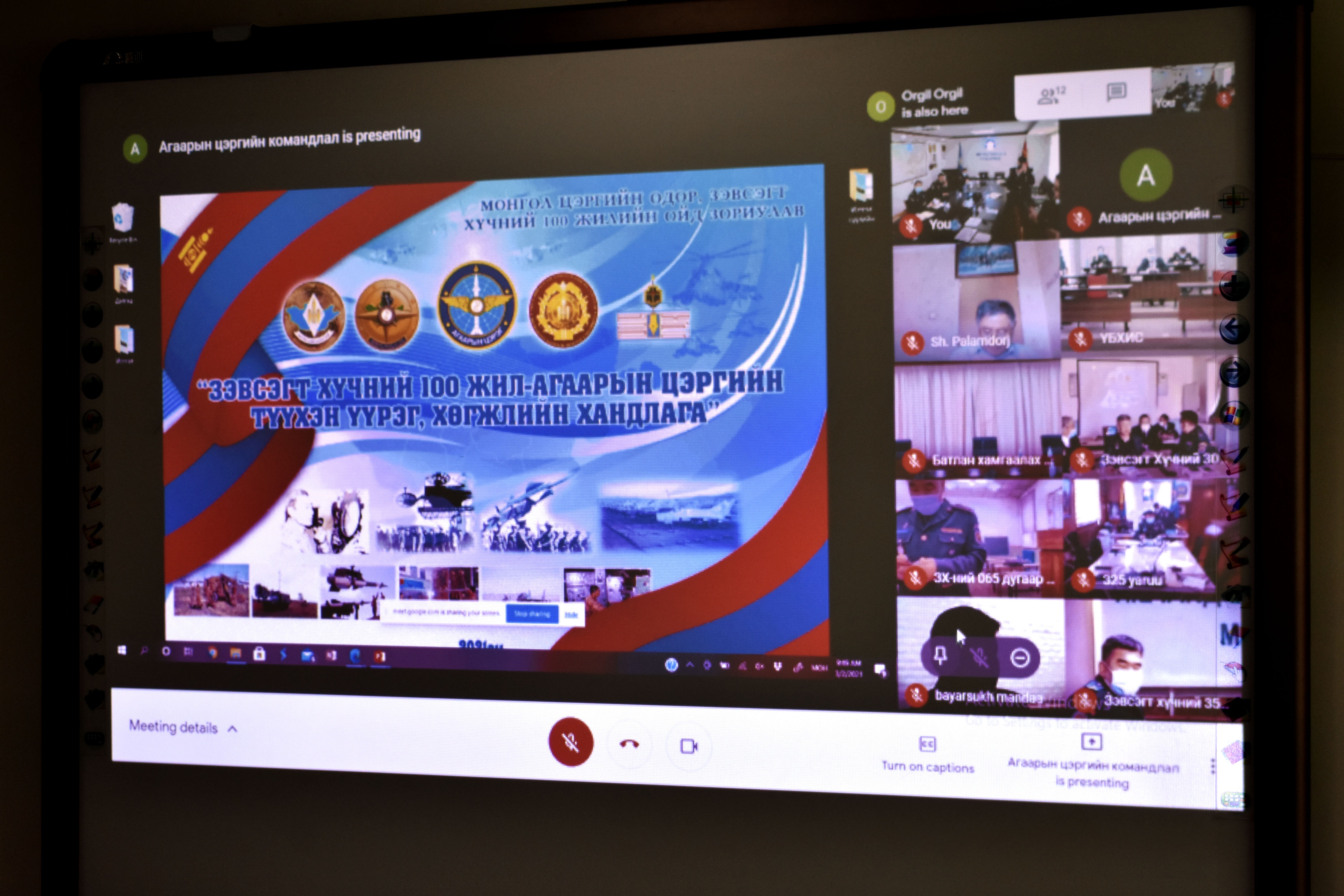 Орчин цагийн Зэвсэгт хүчний 100 жилийн ойг тохиолдуулан 2021 оны 3 дугаар сарын 2-ны өдөр Зэвсэгт хүчний Агаарын цэргийн командлал, Батлан хамгаалах эрдэм шинжилгээний хүрээлэн хамтран “Зэвсэгт хүчний 100 жил-Агаарын цэргийн түүхэн үүрэг, хөгжлийн хандлага” сэдэвт эрдэм шинжилгээний хурлыг цахимаар зохион байгууллаа.
