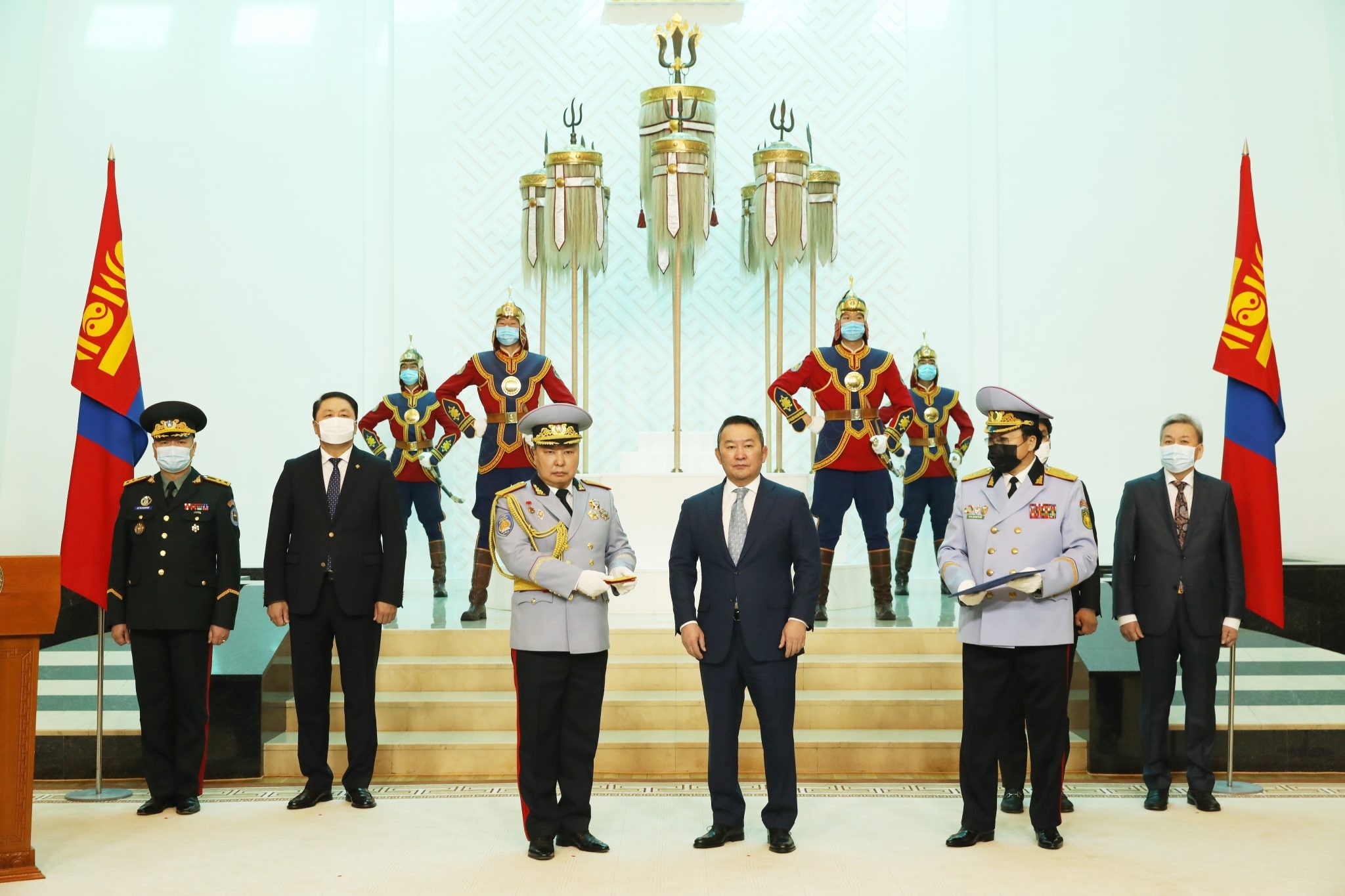 Монгол Улсын Ерөнхийлөгчийн зарлигийн дагуу цэргийн дээд цол гардуулах ёслолын үйл ажиллагаа өнөөдөр Төрийн ордны Ёслол, хүндэтгэлийн Их танхимд болж, цолыг Монгол Улсын Ерөнхийлөгч, Зэвсэгт хүчний Ерөнхий командлагч Халтмаагийн Баттулга гардуулав.