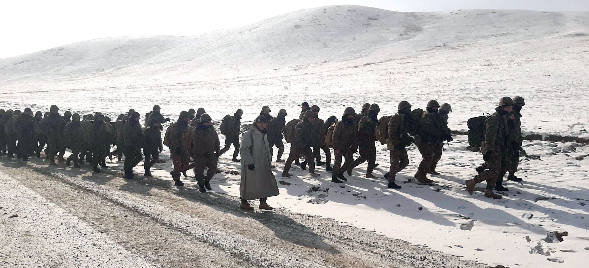 Ангийн 2021-2022 оны сургуулийн жилийн сургалтын төлөвлөгөөнд тусгагдсаны дагуу тактик, тусгай бэлтгэлийн 30 км-ийн явган маршийг ангийн офицер, ахлагч нарын гар нийлэмжтэй ажиллагааг хангах, цаг агаар хүндрүүлсэн нөхцөлд байлдааны болон олон талт үүрэг гүйцэтгэх үеийн сэтгэл зүйн бэлтгэлжилтийн түвшнийг дээшлүүлэх, мэдлэг, дадлага, ур чадварыг хөгжүүлэх зорилгоор “Хужирбулан-Гачууртын ам-Улиастайн ам-Хужирбулан”, гэсэн маршрутаар зохион байгууллаа.