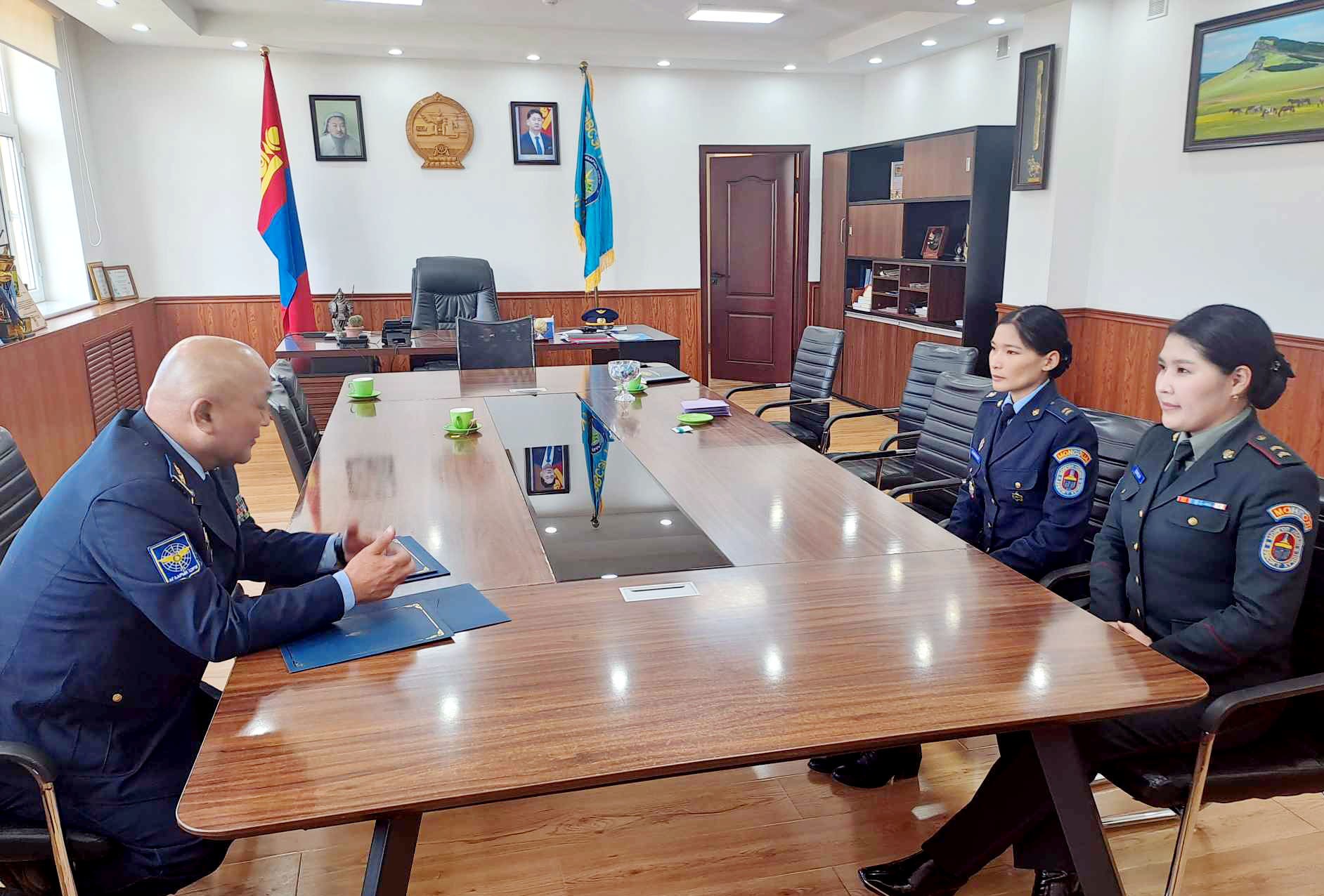 Агаарын цэргийн командлагч хурандаа Т.Ганбат Ахлагч М.Ариунтуяа, Б.Хулан нарт баяр хүргэж Зэвсэгт хүчний Агаарын цэргээс АНУ-д суралцсан анхны эмэгтэй ахлагч нар болсноороо бусдад боломж байгааг харуулж, эмэгтэй ахлагч нарыгаа сэдэлжүүлж амжилттай суралцаж төгссөнд баяртай байгаагаа илэрхийлж, сурсан мэдсэн зүйлсээ өөрийн ангидаа сурталчилж, таниулах тал дээр анхаарахыг хүссэн юм.
