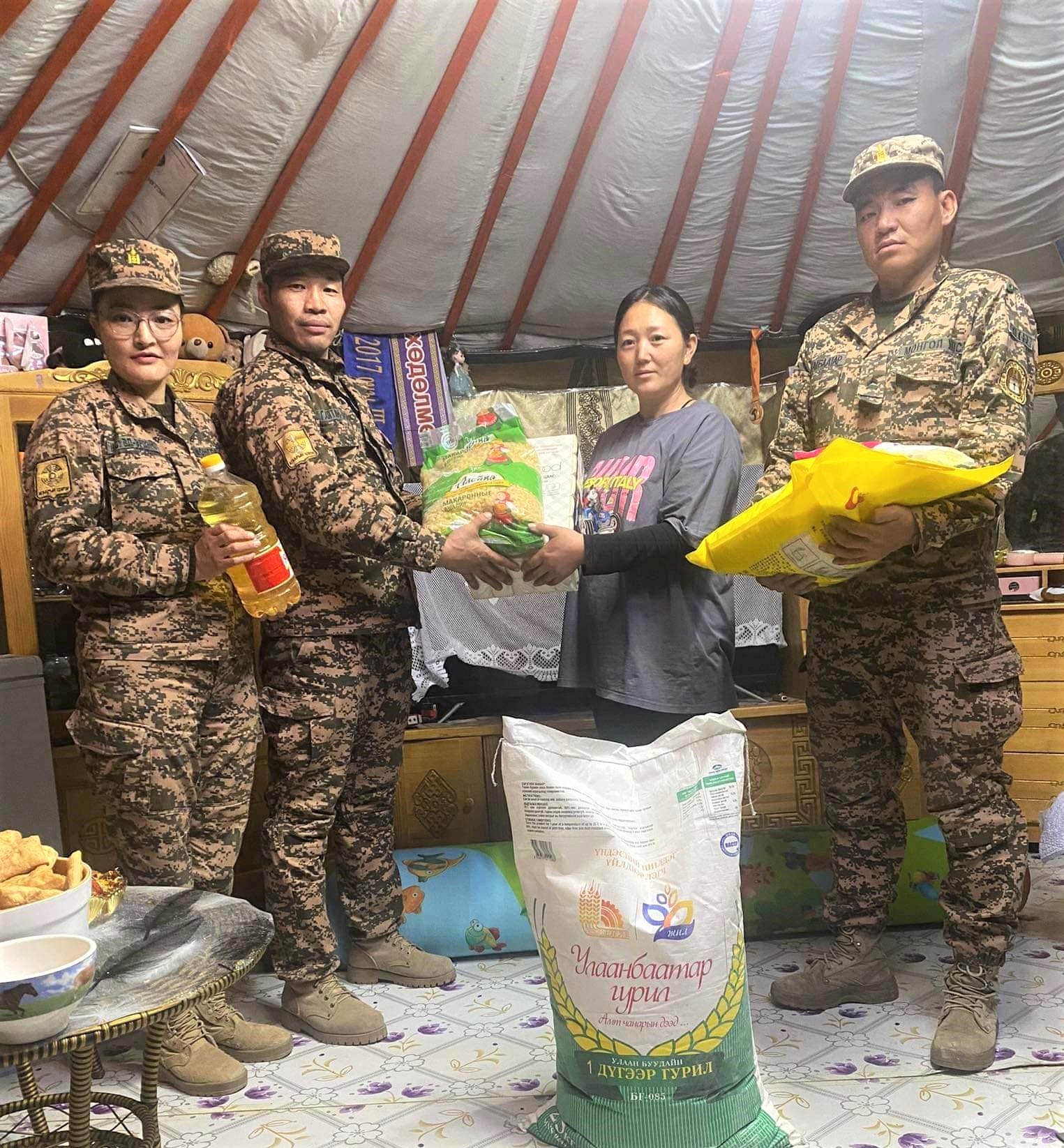 Мөн өрх толгойлсон эмэгтэй болон олон хүүхэдтэй 2 өрхийг сонгон хоол хүнс, ахуйн хэрэглээний тусламж үзүүлсэн юм. Тус ротын ахлагч, ахлах ахлагч Л.Галбадрах “Манай хамт олон чадахынхаа хэрээр бусдад туслахыг эрмэлздэг. Материаллаг тусламж биш юмаа гэхэд цагаа олсон урмын үг ч ядруухан яваа нэгнийг сэв хийтэл босгож ирдэг хүчтэй байдаг юм шүү дээ. Хүүхдүүд бол бидний ирээдүй, тэдэнгүйгээр бид Монголын маргаашийг төсөөлшгүй. Хүүхэд нэг бүр халуун ам бүлээрэй, эрүүл энх, аз жаргалтайгаар өсөн торнихыг харах нь эх орондоо тангараг өргөсөн бидний нэгэн зорилго яахын аргагүй мөн билээ. Манай хамт олон хүүхдийн сайн сайхны төлөө үйлсэд гар бие оролцоход хэзээд бэлэн байх болно” хэмээн хэлсэн юм.