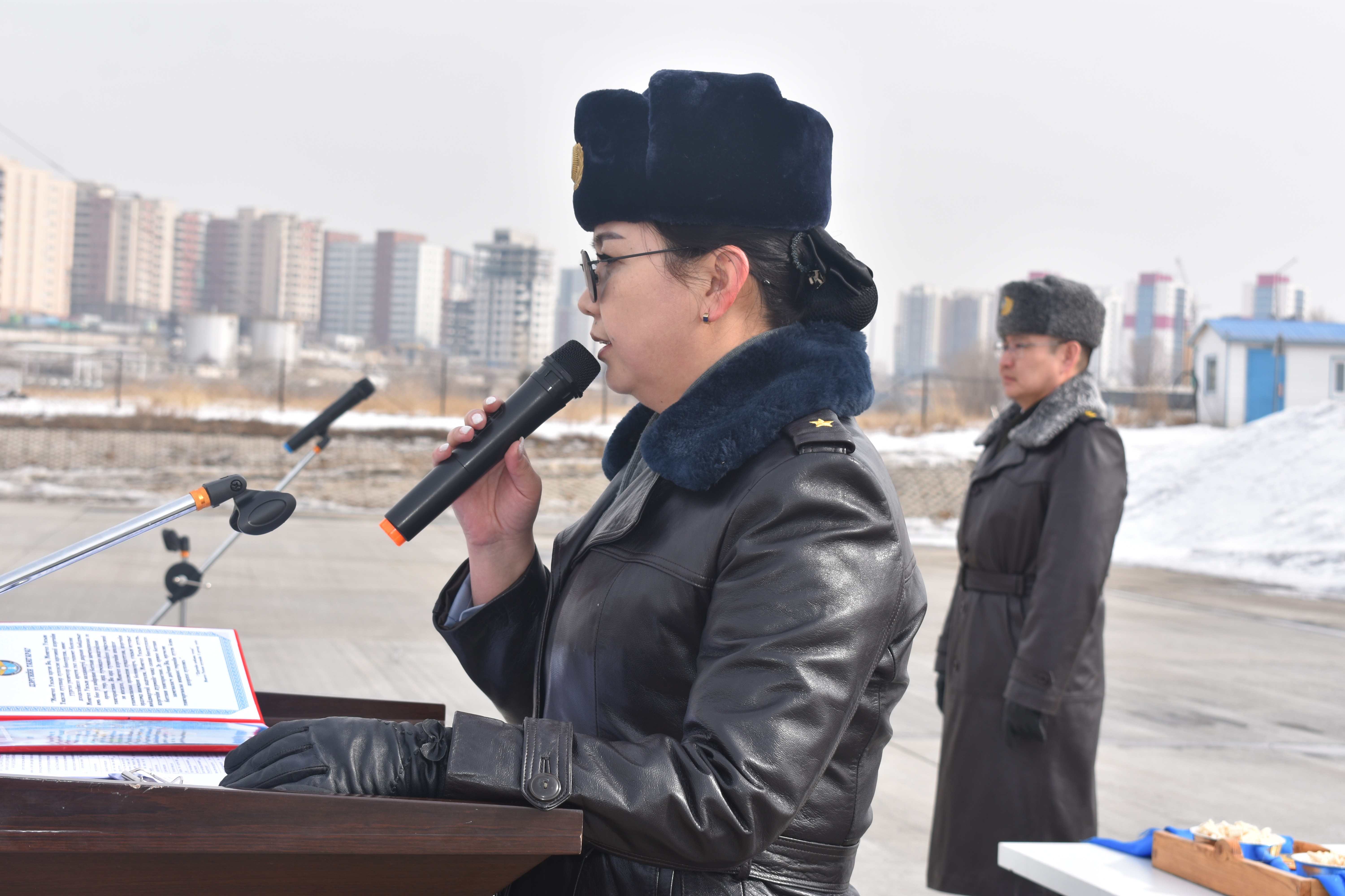 Агаарын цэргийн штабын дарга хурандаа Б.Энхзоргол хэлсэн үгэндээ “Хүчирхэг Хүннү гүрний үеэс хөх Монголоо хамгаалж, алдраа дуурьсгаж, дэлхийн дахинаа Монголоо тамгалж ирсэн баатарлаг түүхтэй дайчдын шинэ цагийн Зэвсэгт хүчин үүсэн байгуулагдсаны түүхт 103 жилийн ойн баярын мэнд хүргэхийн ялдамд энэ онд Улсыг Агаарын довтолгооноос хамгаалах цэргийн 60 жилийн ойн баяр тохиож буйг цохон хэлсэн юм. Мөн агаарын орон зайн хяналт тавих, хамгаалах үндсэн үүргийн зэрэгцээ байгалийн давагдашгүй хүчин зүйлд өртөн бэрхшээл тулгараад байгаа ард иргэдэд үзүүлсэн тусламжийн ажилд гар бие оролцон байгаа цэргийн алба хаагчдаараа, тив, дэлхийн томоохон тэмцээнүүдэд амжилт үзүүлсэн тамирчдаараа, энэ цаг үед дэлхийн энх тайвны их үйлсэд хувь нэмрээ оруулж байгаа цэнхэр дуулгатнуудаараа бахархаж буйгаа илэрхийлээд мартаж боломгүй түүх, тасалж үл болох угсаа, хойрголж үл болох үүрэг бидэнд бий. Монгол Улсын Агаарын хил тайван байна. Шонхруудын маань хөөрөлт, буултын тоо нь тэнцүү, хөх тэнгэр нь цэлмэг байхын ерөөл өргөе” гэсэн ерөөлөөр энэ өдрийн ёслолын арга хэмжээ өндөрлөлөө.