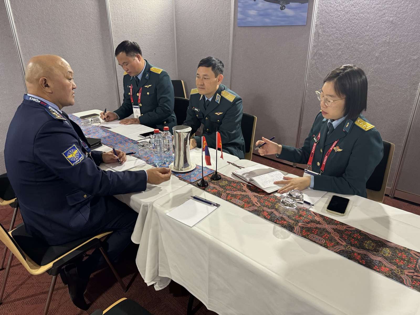 Агаарын цэргийн командлагч хурандаа Т.Ганбат Австрали улсын Командлагчийн орлогч Агаарын хүчний маршал Харвэй Рэйнолд, Япон улсын Агаарын хүчний орлогч дарга дэслэгч генерал Такута Осагавари, Вьетнам улсын командлагч дэслэгч генерал Пам Туан, Франц улсын сансрын командлагч хошууч генерал Филипп Адам, АНУ-ын Агаарын хүчний гадаад харилцаа эрхэлсэн захирал хатагтай Келли Сийболт нартай хоёр талын уулзалт хийж хамтын ажиллагааны чиглэлээр санал солилцлоо.