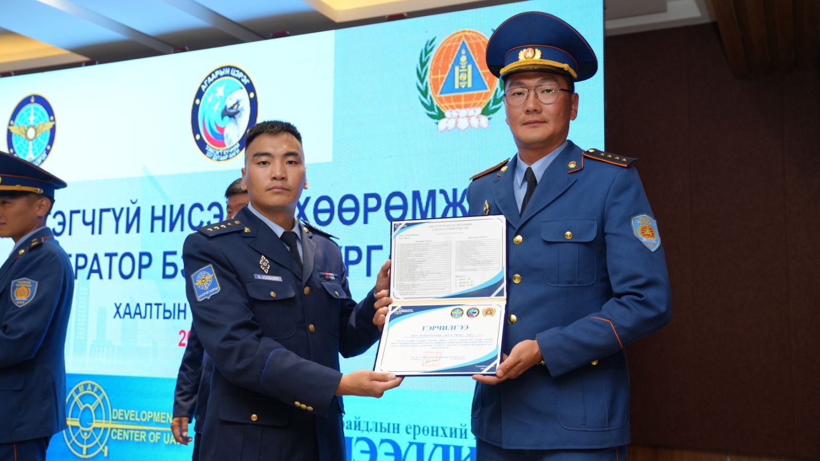 Сургалтын хаалтын үйл ажиллагаанд Зэвсэгт хүчний 337 дугаар ангийн захирагч, хурандаа Э.Батсайхан, ОБЕГ-ын Ажиллагааны удирдлагын газрын дарга, хурандаа Б.Баянмөнх, Агаарын цэргийн командлалын Сургалт бэлтгэлийн хэлтсийн мэргэжилтэн, ахмад Ц.Анхмагнай, Судалгаа туршилтын төвийн дарга, ахмад Б.Золбоот болон нийт бие бүрэлдэхүүн оролцож амжилттай төгссөн суралцагсдад баяр хүргэж гэрчилгээ гардууллаа.