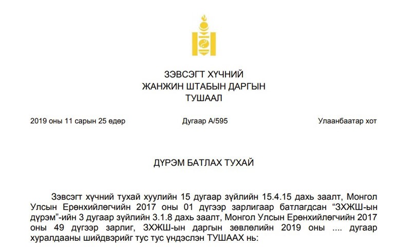МОНГОЛ УЛСЫН ЦЭРГИЙН НИЙТЛЭГ ДҮРМҮҮД МЭДЭЭЛЭЛТөрийн албаны салбар зөвлөл