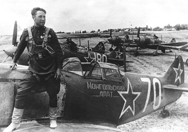 1943 оны 3 дугаар сард болсон БНМАУ-ын 26 дугаар бага хурал Улаан армид туслах талаар гүйцэтгэсэн ажлыг сайшаагаад “Монгол ард” хэмээх нисэх онгоцны эскадриль байгуулах шийдвэрийг гаргаж, уг эскадрилийг байгуулахад шаардагдах хөрөнгийг 4 сар хагасын хугацаанд хуримтлуулж, 1943.09.25-ны өдөр Смоленск мужийн төмөр замын Вязовая өртөөний ойролцоох хээрийн аэродромд бөөрөн дээрээ “Монгол ард” гэсэн үсгийг тод цагаан будгаар бичсэн “Ла-5” хэмээх байлдааны 12 нисэх онгоцноос бүрдсэн “Монгол ард” нисэх онгоцны эскадрилийг гардуулжээ.