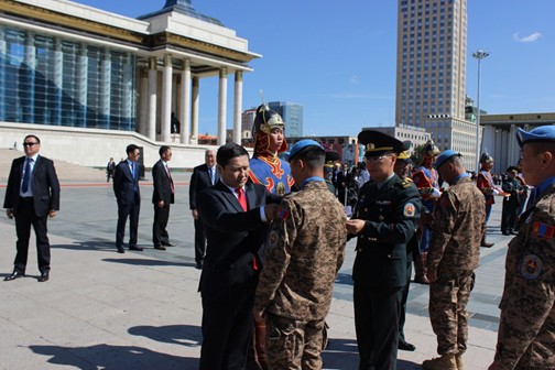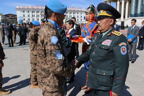 Африк тивд тусгаар тогтолоо зарласан дэлхийн хамгийн отгон улс болох БНӨСУ-д НҮБ-ийн мандаттайгаар 9 сарын хугацаанд цагийн байдлын болон цаг агаарын хүнд нөхцөлд цэрэг хүний тэсвэр хатуужил, эр зориг гарган хүлээсэн үүргээ нэр төртэй биелүүлсэн энхийг сахиулагчдынхаа үйл хэргээр бахархаж, эдгээр цэргийн алба хаагчдийн хөдөлмөр зүтгэлийг Монголын төр, засаг хүндэтгэн үнэлж, төрийн дээд одон медалиар шагнах хүндэтгэлийн арга хэмжээ Эзэн Богд Чинис Хааны талбайд зохион байгуулагдлаа.