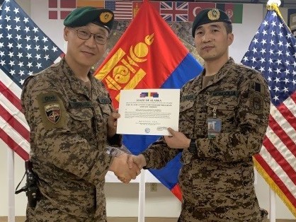 ИБНАУ дахь “Умард Атлантын Гэрээний Байгууллага”-ын тэргүүлсэн “Шийдвэртэй дэмжлэг” ажиллагаанд АНУ-ын Зэвсэгт хүчинтэй хамтран үүрэг гүйцэтгэж байгаа Монгол Улсын Зэвсэгт хүчний XII ээлжийн цэргийн багийн бүрэлдэхүүнд АНУ-ын Аляска мужийн “Үндэсний гвардын хамтын ажиллагааны төлөө” медалийн туузыг гардуулах ёслол энэ сарын 10-ны өдөр боллоо.