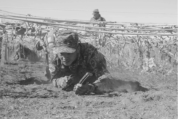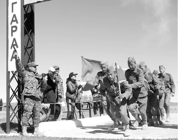 Дохионы пуужин тас хийх чимээтэй зэрэгцэн тамирчид гараанаас гарч үлээвэр хөгжмийн аянд хөл нийлүүлэн гүйсээр гранат шидэх эхний цэгт ирэв. Эрэгтэй, эмэгтэйгээрээ хоёр хэсэгт хуваагдан гранат шидэж тус тусын үнэлгээг авах ёстой. Яг энэ цэгээс хамгийн өндөр оноог авч бас алдаж болох учраас баг тамирчид маш нягт нямбай хандаж байгаа нь илт. Дараагийн сорилт болох саадын зурвасыг саадгүй давсан тамирчид галын бэлтгэлийн норматив биелүүлэх цэгт ирж тасгийн захирагчийн сугалсан галын бэлтгэлийн 12, 13 дугаар нормативуудыг чадварлаг биелүүлж, тасгийнхаа оноог цуглуулсны дараа тактикийн ажиллагаанд шилжив. Тасаг шүүгчийн тогтоосон заагаас дохиогоор гинжинд тарж, тэмдэглэсэн заагт, цөмийн дэлбэрэлтийн гялсхийлтээр ажиллаад тасгийн захирагчийн дараагийн командаар 25 м-ийн торон саадыг мөлхөлтөөр туулсан юм. Эдгээр даалгаврын дараа тамирчдын хүч багагүй саарч байгаа нь анзаарагдсан ч тэд хөнөөлтийн голомт, цэргийн байр зүйн болон химийн нормативуудыг тэсвэр гарган туулж, барианд хүлээх дасгалжуулагч, хөгжөөн дэмжигчдийн уухайн түрлэгээр хүч сэлбэн, урам зоригтойгоор барианд орж байлаа. Даалгавар бүр амаргүй нь мэдээж. Хүүхдүүд сэтгэл зүйн бэлтгэл сайтай саад бүрийг даван туулж, саарсан нэгэндээ дэм өгсөөр хамтдаа бүх сорилтын ард гарч чадсан юм. Тамирчид цаг хугацаа ямар үнэтэй болохыг илүү их мэдэрсэн нь лавтай. Басхүү бэлтгэл сургууль хэр сайн хийснээс хамааран тэмцээнд хэрхэн оролцох өнгө тодорхойлогддог. Гэвч тухайн өдрийн тэнгэр, тамирчдын од мэдэх нь ч бас бий.