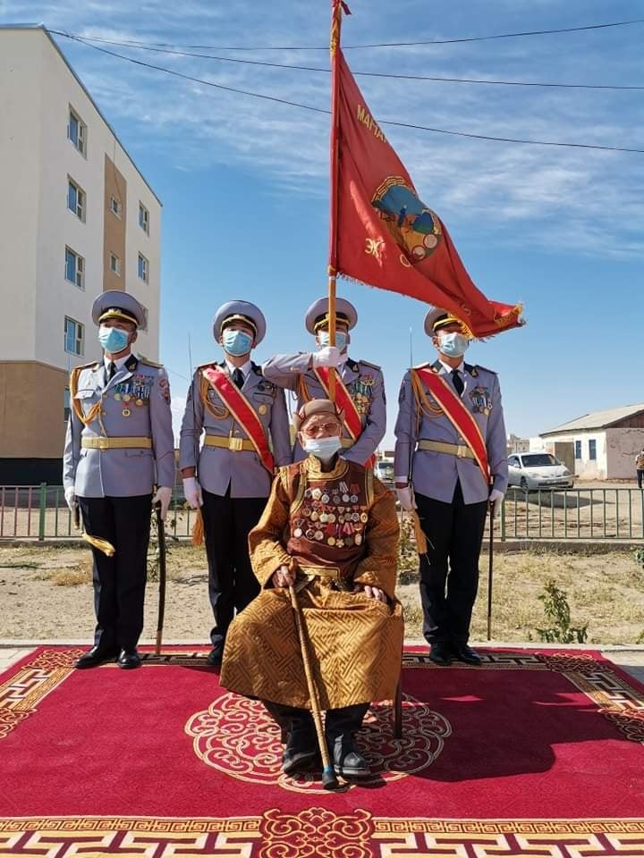 Ардын хувьсгалын 100 жил Батлан хамгаалах яамны 110 жил, орчин цагийн Зэвсэгт хүчин үүсэн байгуулагдсаны 100 жил, Чөлөөлөх дайны 76 жил, Олон улсын ахмадын баярын өдрийг тохиолдуулан Монгол Улсынхаа тусгаар тогтнол бүрэн эрхт байдал, Улс эх орныхоо халдашгүй дархан байдал, энэ цагийн тайван амьдралын төлөө халуун амь, бүлээн цусаа үл хайрлан тэмцэж явсан өдгөө 94 настай Дорноговь аймгийн Сайншанд сумын 2 дугаар багийн иргэн ахмад дайчин Мядаг овогтой Дэрэм гуайд Дорноговь аймгийн Засаг даргын Тамгын газрын Цэргийн штаб болон Байлдааны гавьяаны улаан тугийн одонт Жанжин Д.Сүхбаатарын нэрэмжит Зэвсэгт хүчний 336 дугаар анги ёслол төгөлдөр хүндэтгэл үзүүлж дурсамж, гарын бэлэг гардуулан өглөө.