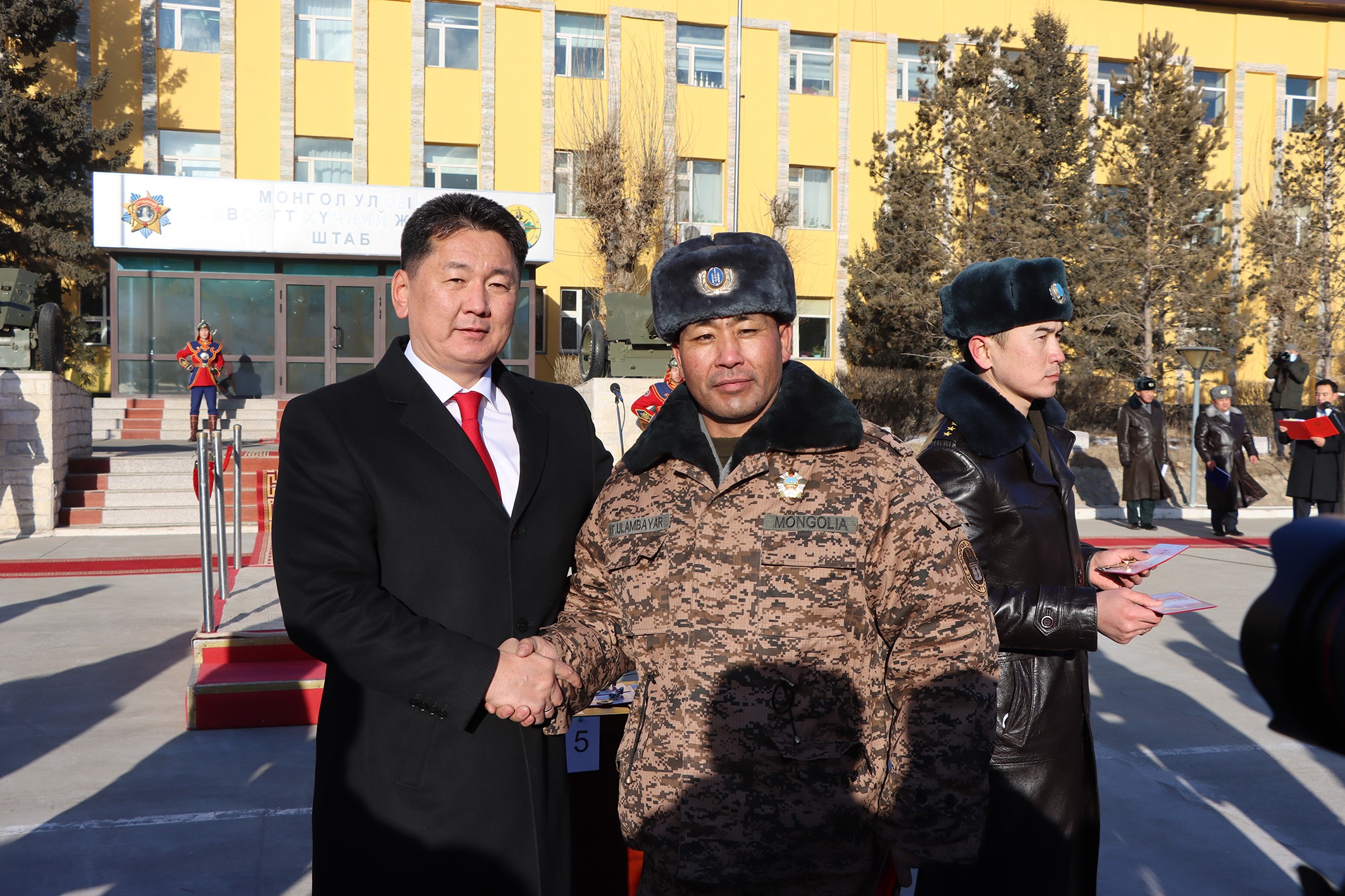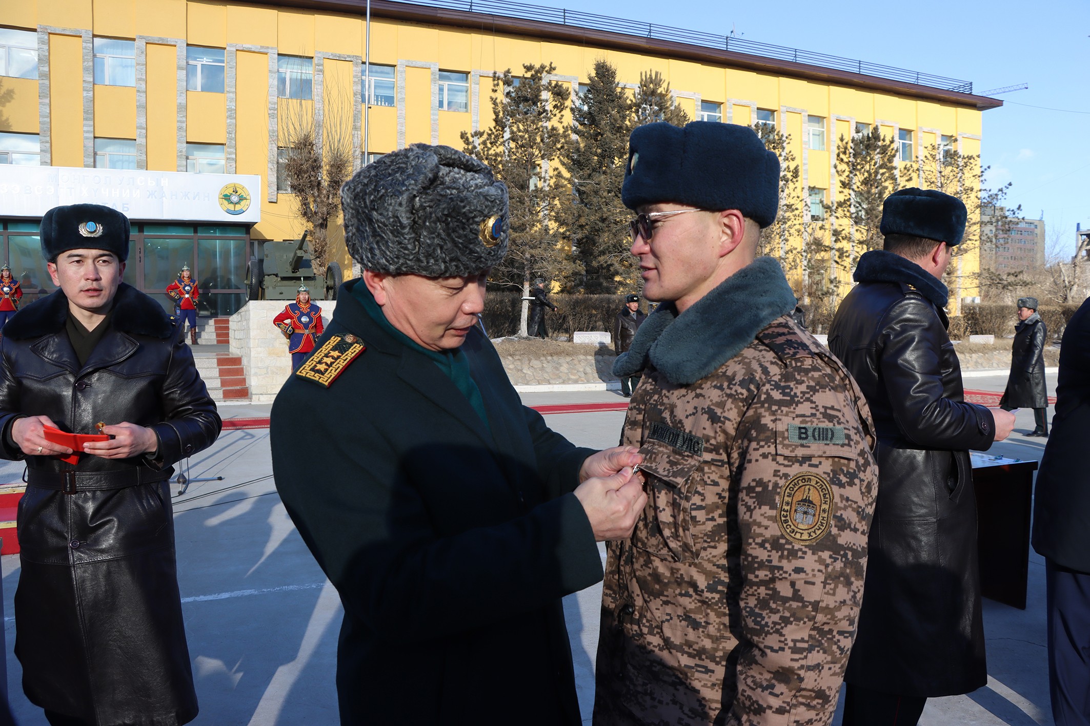 Энэ өдөр Монгол Улсын Ерөнхийлөгчийн зарлигаар Зэвсэгт хүчний мэргэжлийн ахлагч нарыг түүчээлэн БНӨСУ-д явагдаж байгаа энхийг сахиулах ажиллагааны командлалд штабын ахлагчаар мэргэжлийн өндөр ур чадвар гарган ажилласан тэргүүн ахлагч Ч.Түвшин нарт Цэргийн гавьяаны улаан тугийн одон, Хойд бүсийн командлалын “Эко” баазын ажиллагааг удирдан цэргийн алба хаагчдын таатай орчныг бүрдүүлж, томилгоот хариуцлагын бүсэд эргүүл, цувааны үүргийг амжилттай зохион байгуулсан хурандаа Ц.Бат-Орших, батальоны үндсэн бүрэлдэхүүн болох ахлагч нарын бүрэлдэхүүнийг амжилттай удирдан, сахилга, зохион байгуулалт, үүрэг гүйцэтгэлтэд байнгын хяналт тавьж, холбогдох арга хэмжээг шуурхай авч ажилласан тэргүүн ахлагч Б.Пүрэвсүрэн нарын 8 цэргийн алба хаагчид Цэргийн гавьяаны одон, болзошгүй цагийн байдалд цэргийн аюулгүй байдлыг хангах дадлага, сургуулилтуудыг төлөвлөн зохион байгуулж, бэлэн байдлыг хангаж ажилласан сургагч ахлагч Д.Чулуунсүх нарын 10 алба хаагчид Цэргийн хүндэт медаль хүртээлээ. Мөн НҮБ-ын энхийг сахиулах ажиллагаанд анх удаагаа амжилттай оролцож, томилгоот үүргээ амжилттай биелүүлсэн дэслэгч Э.Батсүх, байлдагч Ш.Гэндэнгончиг нарын 434 алба хаагчийг “Энхийн төлөө” медалиар тус тус шагнаж урамшуулсан юм.