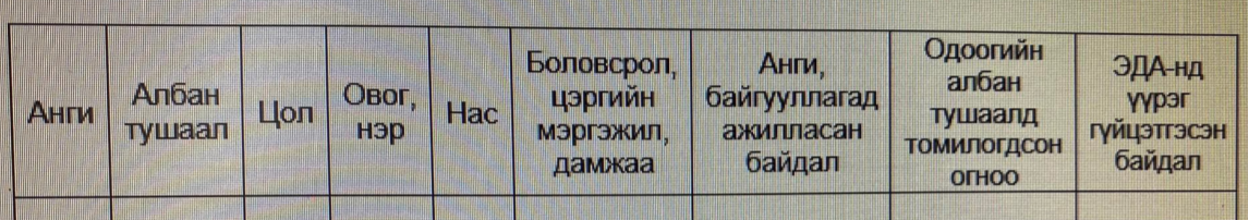 2. Ажил байдлын тодорхойлолт;
