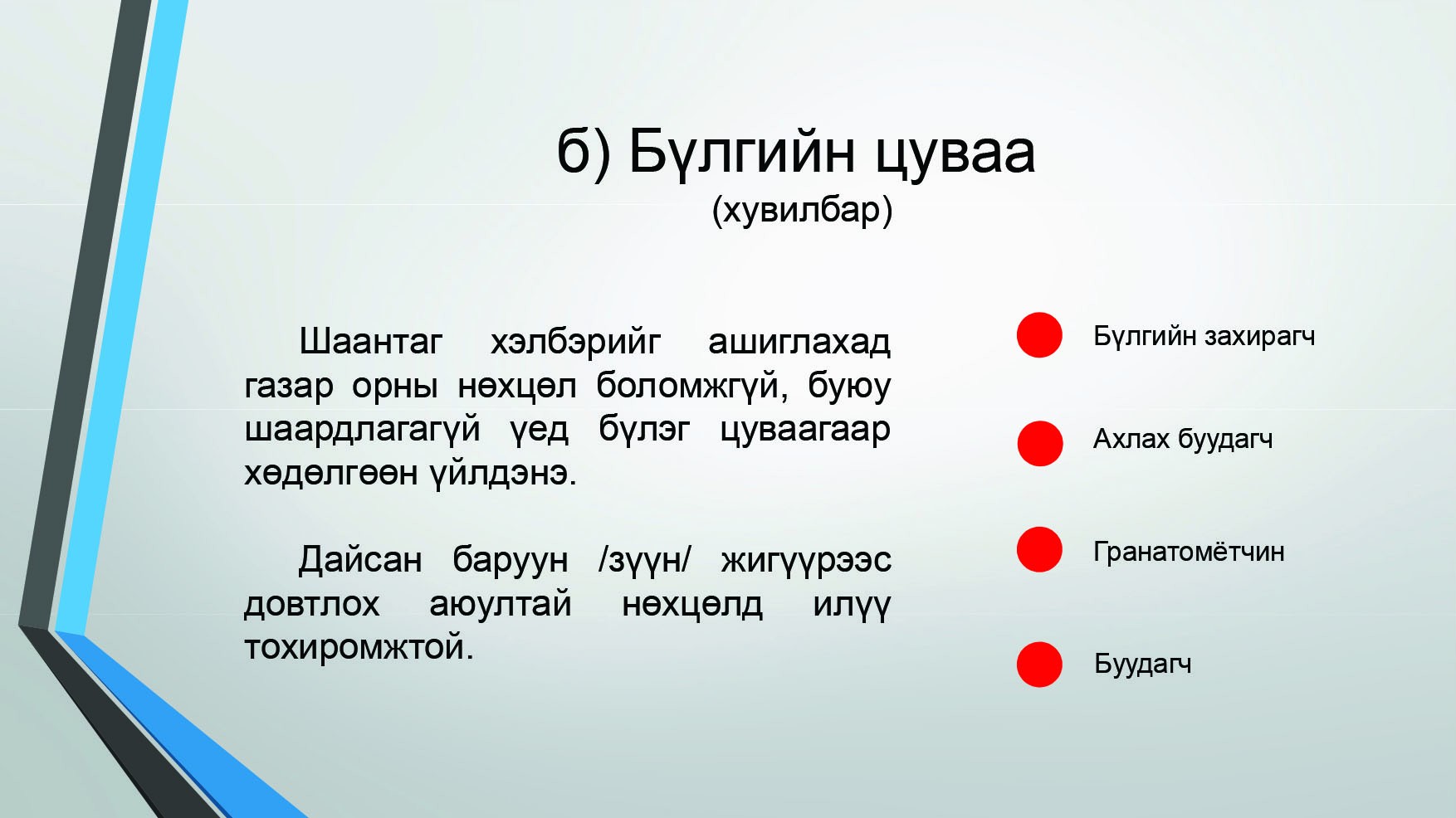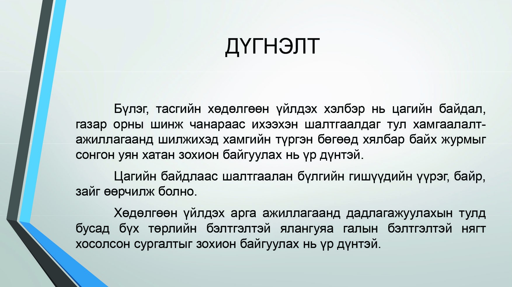 МОНГОЛ УЛСЫН ЦЭРГИЙН НИЙТЛЭГ ДҮРМҮҮД