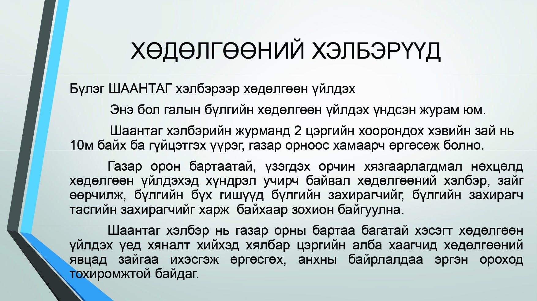 ЖИЖИГ БҮЛГЭЭР ХӨДӨЛГӨӨН ҮЙЛДЭХ АРГА БА ХЭЛБЭРҮҮД