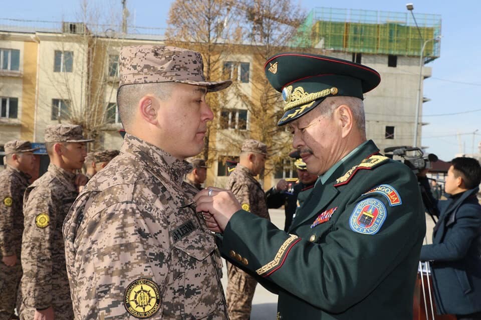 ИБНАУ-д явагдаж байгаа "Шийдвэртэй дэмжлэг" ажиллагаанд АНУ-ын Зэвсэгт хүчинтэй хамтран үүрэг гүйцэтгэсэн Монгол Улсын Зэвсэгт хүчний IX ээлжийн цэргийн багийн бие бүрэлдэхүүнд өнөөдөр төрийн болон салбарын одон медаль гардуулах ёслолын ажиллагаа боллоо. Энэхүү ёслолын ажиллагаанд Батлан хамгаалахын дэд сайд Т.Дуламдорж, ЗХЖШ-ын орлогч дарга хошууч генерал Ж.Бадамбазар, ЗХЖШ, АЦК, ХЗЦК-ын удирдлага, цэргийн багийн бие бүрэлдэхүүн, тэдний ар гэрийн төлөөлөл оролцлоо.
