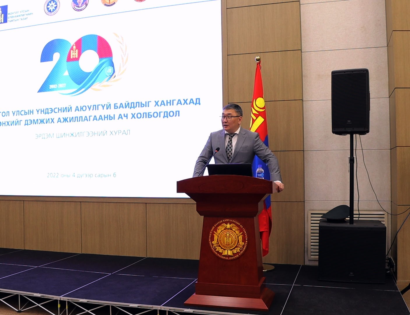 Монгол цэрэг энхийг дэмжих ажиллагаанд оролцож эхэлсний 20 жилийн ойг угтаж Монгол Улсын Ерөнхийлөгчийн Тамгын газар, Үндэсний аюулгүй байдлын зөвлөл, Батлан хамгаалах яам, Зэвсэгт хүчний Жанжин штаб, Үндэсний батлан хамгаалахын их сургууль, Батлан хамгаалахын эрдэм шинжилгээний хүрээлэн хамтран “Монгол Улсын Үндэсний аюулгүй байдлыг хангахад энхийг дэмжих ажиллагааны ач холбогдол” сэдэвт эрдэм шинжилгээний хурлыг энэ сарын 06-ны өдөр зохион байгуулав.