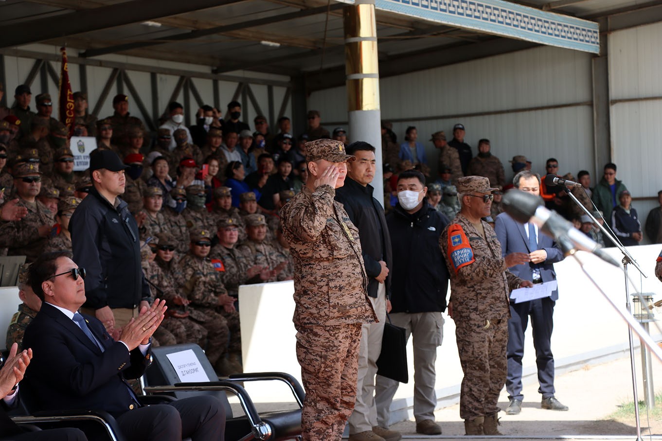 -тэргүүн байрт Хошууч генерал Б.Амгаланбаатар командлагчтай Зэвсэгт хүчний Хуурай замын цэргийн командлалын Ахмад Б.Ариунболд захирагчтай рот;