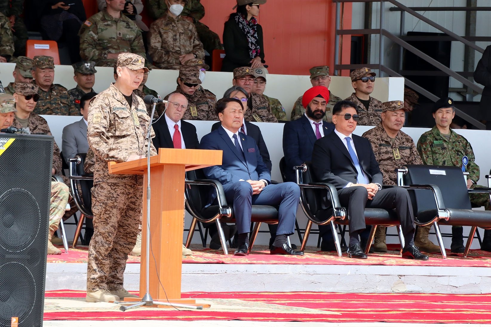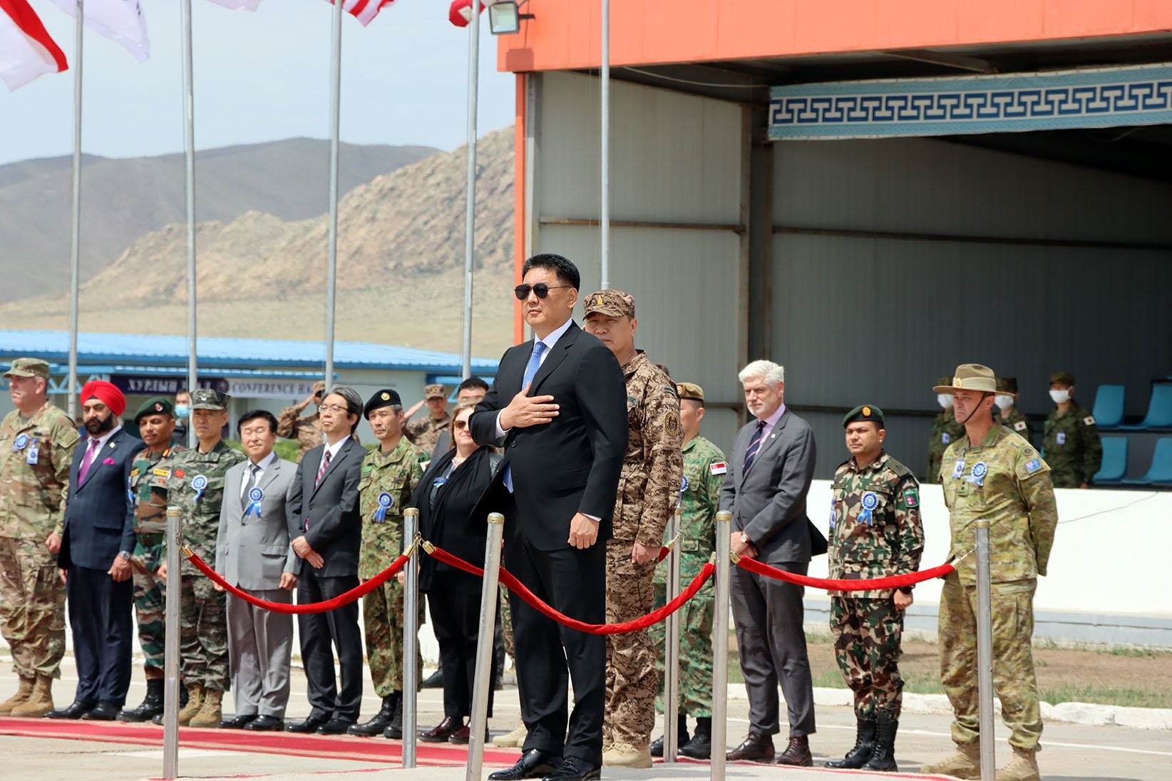 Монгол Улс саяхан Монгол цэрэг энхийг дэмжих ажиллагаанд оролцож эхэлсний 20 жилийн ойг Монгол Улсын Ерөнхийлөгчийн ивээл доор ёслол төгөлдөр тэмдэглэн өнгөрүүллээ. Бид дэлхий дахины энх тайван, хүн төрөлхтний амар амгалан амьдралын төлөө зүтгэсэн 20 жилийн туршлага, сургамжаа дүгнэн цэгнэж, цаашдын бодлого, зорилтоо тодорхойлж буй цаг үед “Хааны эрэлд-2022” энхийг дэмжих ажиллагааны олон улсын сургууль болж байгаа нь чухал ач холбогдолтой юм. Дэлхий ертөнцийн энхийн төлөө зорилгод нэгдэн манай сайхан оронд морилон саатсан энхийн элч та бүхэн мэдлэг, туршлагаа харамгүй хуваалцаж арвижуулахын зэрэгцээ нүүдэлчин соёл иргэншлийн сонгодог уламжлалыг дээдлэн хадгалж үлдсэн Монгол орны маань түүх цадиг, ахуй соёл, зан заншилтай бага ч болов танилцаж, сайхан дурсамжтай буцна гэдэгт эргэлзэхгүй байна. Эрхэм цэнхэр дуулгатан Та бүхэн энэхүү сургуулийн явцад ойртон нөхөрлөж, улс түмнүүдийн найрамдал, нөхөрлөлийн гүүр, дотнын анд найз болохын ерөөлийг өргөн дэвшүүлье” гэдгийг онцолсон юм.