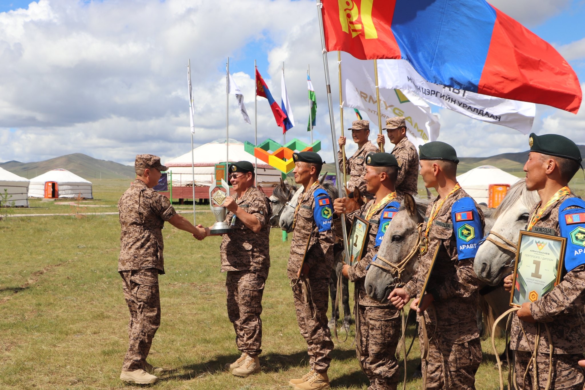 Цэрэг хүний тэсвэр тэвчээр, авхаалж самбаа, мэргэжлийн ур чадвараа дайчлан уул ус, элсэн толгод, бартаа саад бүхий 140 орчим километр замыг Монгол морины нуруун дээр амжилттай даван туулж өрсөлдсөн улс улсын шилдэг морьтон дайчид Та бүхэнд халуун баяр хүргэе!