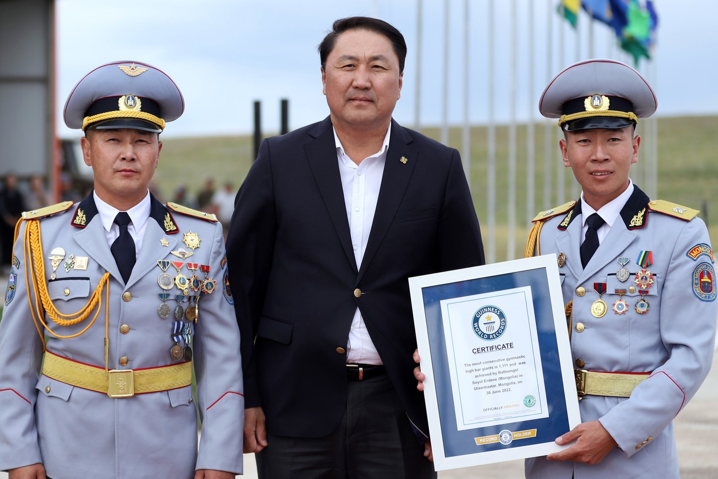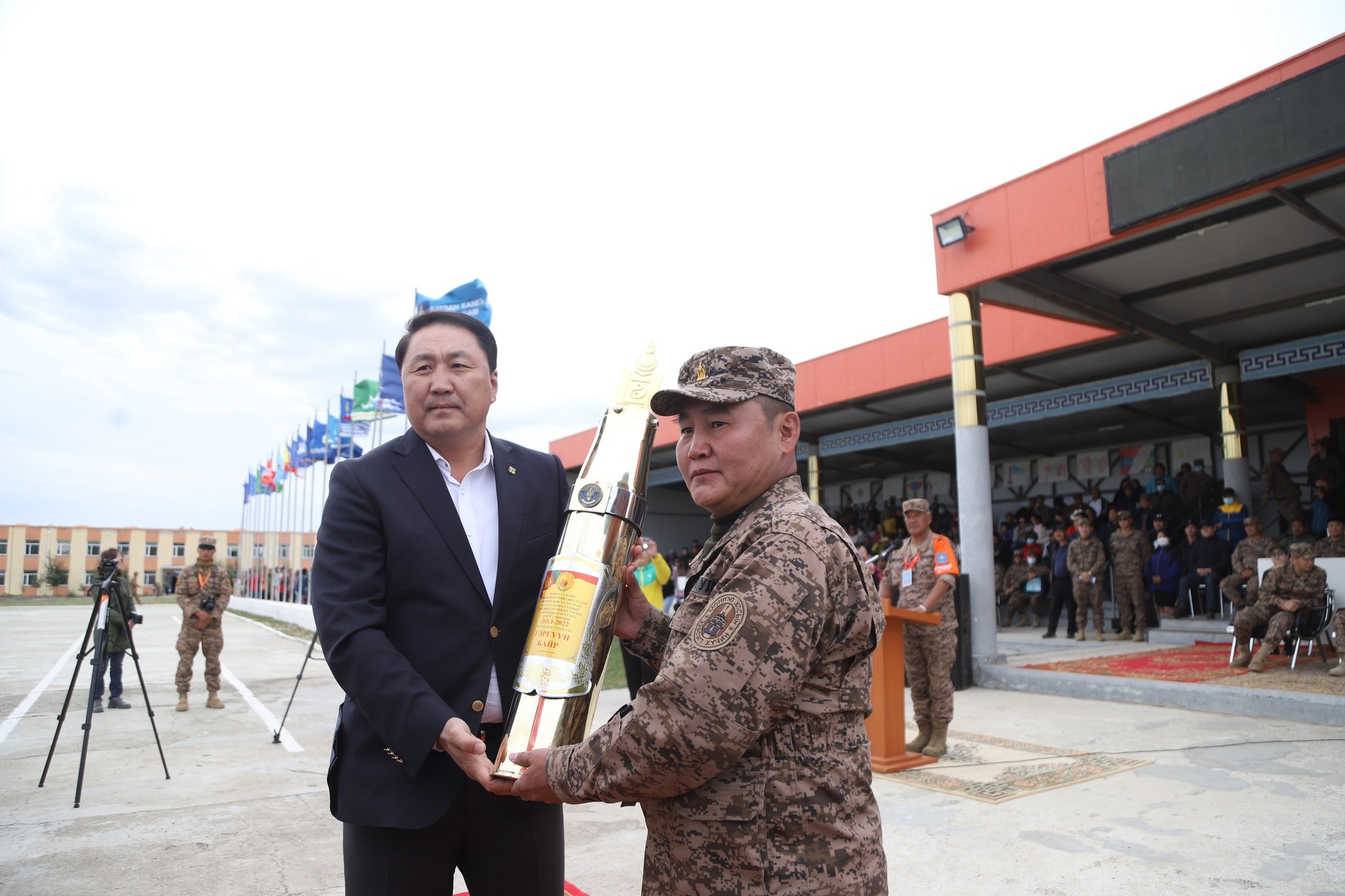 Өргөмжлөл, цом, медалийг Монгол Улсын Ерөнхийлөгчийн Тамгын газрын дарга Я.Содбаатар, Засгийн газрын гишүүн, Батлан хамгаалахын сайд Г.Сайханбаяр, Зэвсэгт хүчний Жанжин штабын дарга, дэслэгч генерал Д.Ганзориг нарын албаныхан аймаг, дүүргийн Засаг дарга, ЗДТГ-ын Цэргийн штабын дарга, тасгийн захирагч, сурагчдад тус бүр гардуулан өгч, баяр хүргэлээ.