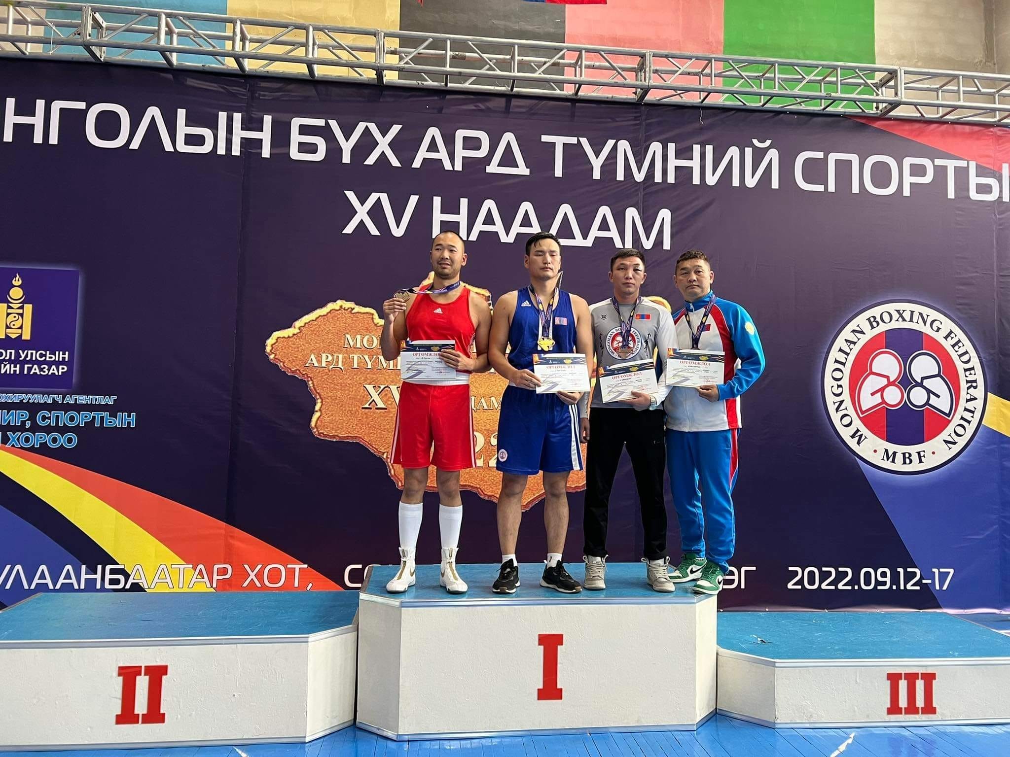 Монголын бүх ард түмний спортын XV их наадмын Боксын төрөлд Зэвсэгт хүчний Алдар спорт хорооны баг тамирчид багийн дүнгээр тэргүүлсэн амжилтыг үзүүлсэн байна.