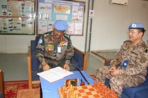 Дэслэгч генерал Мохан Субраманиян Монгол Улсын Зэвсэгт хүчний мотобуудлагын батальоны удирдлагад талархсанаа илэрхийлж, секторын штабын үйл ажиллагаатай танилцан НҮБ-ын баазын аюулгүй байдлыг биечлэн үзэж, танилцлаа.