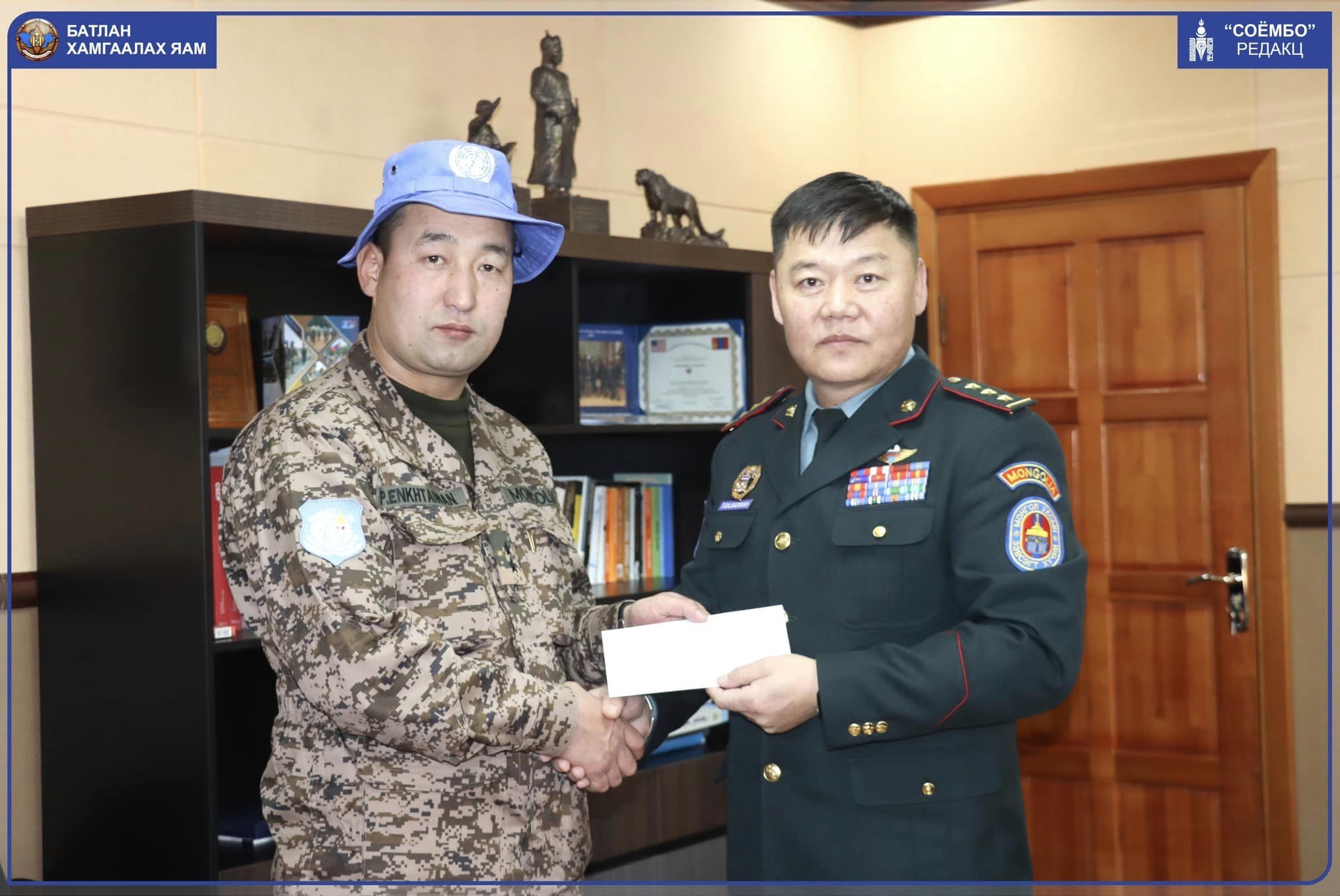 БНӨСУ-д явагдаж буй НҮБ-ын мандаттай "UNMISS" энхийг сахиулах ажиллагаанд үүрэг гүйцэтгэх Мотобуудлагын 12 дугаар ээлжийн бие бүрэлдэхүүнд ЗХЖШ-ын орлогч дарга хурандаа Т.Галбадрахын гэр бүлийн зүгээс ажиллагааны газар оронд ашиглагдаж, хуучирч он цагийн элэгдэлд орсон хөгжмийн зэмсгүүдийг шинэчлэх зорилгоор таван сая төгрөгийн үнэ бүхий цахилгаан хөгжмийн зэмсгийг хандивлалаа.