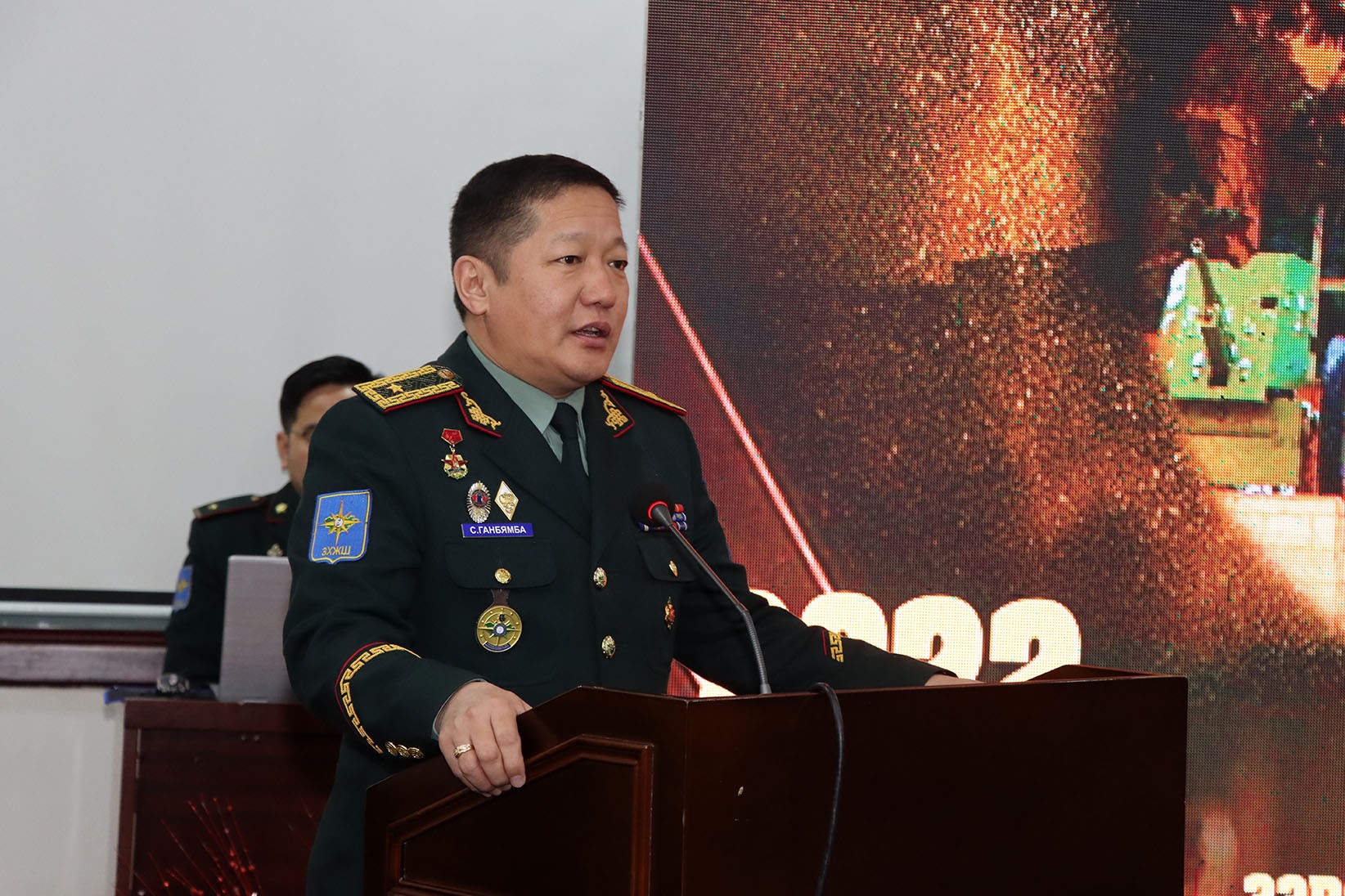 Энэ үеэр Зэвсэгт хүчний Жанжин штабын дарга бригадын генерал С.Ганбямба хэлсэн үгэндээ “Зэвсэгт хүчний тэргүүний анги, салбар, офицер, ахлагч, ажилтан, цэргийн гэрээт алба хаагч, Зэвсэгт хүчний Жанжин штабын 2022 оны тэргүүний зохион байгуулалтын бүтцийн нэгж, тэргүүний албан хаагчдаар шалгарсан Та бүхэнд ЗХЖШ-ын даргын зөвлөлийн өмнөөс болон хувиасаа баяр хүргэе. Бид бүхэн хамтдаа 2022 онд Зэвсэгт хүчний өмнө дэвшүүлсэн бодлого, зорилго, зорилтуудаа бүрэн ханган биелүүлсэн бөгөөд өнгөрсөн Баасан гарагт зохион байгуулсан Зэвсэгт хүчний Жанжин штабын тайлангийн хурлын үеэр жилийн үйл ажиллагаандаа бодит үнэлэлт, дүгнэлтийг өгсөн юм. Ирэх онд Зэвсэгт хүчний өмнө дэвшүүлсэн зорилго, зорилтуудыг хангахад Та бүхний үүрэг, хариуцлага, бодит оролцоо өндөр ач холбогдолтойн дээр зөв төлөвлөлт, удирдлага, манлайлал, бүтээлч үйл ажиллагаагаар өндөр үр дүнд хүрнэ гэдэгт итгэл төгс байна. Зэвсэгт хүчний нийт бие бүрэлдэхүүндээ болон Та бүхний гэр бүлд ажлын их амжилт, эрүүл энх, сайн сайхан бүхнийг хүсэн ерөөе. Та бүхний юу санасан есөн хүсэл бүхэн тань сэтгэлчлэн бүтэх болтугай” хэмээсэн юм.
