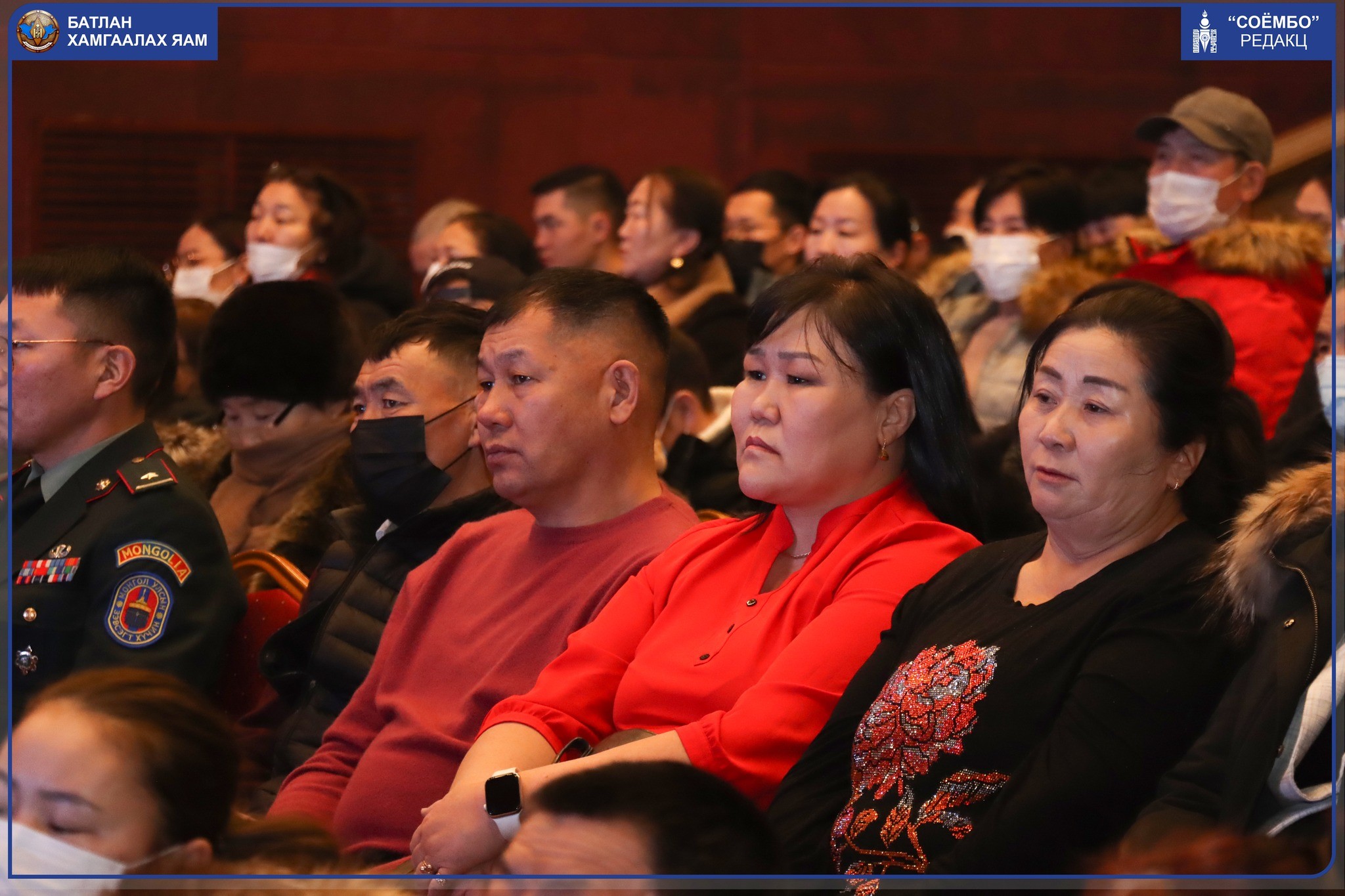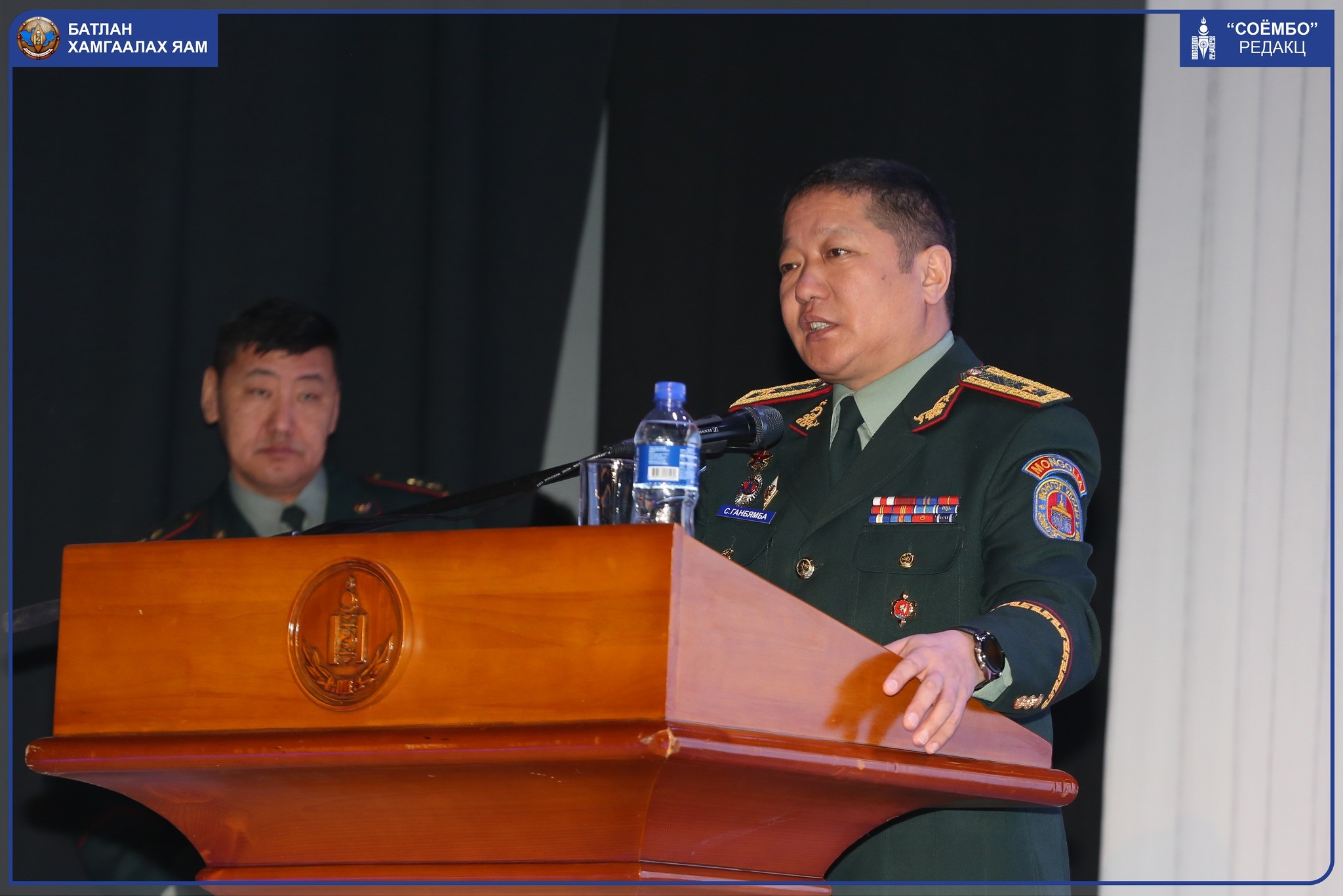 Манай цэргийн алба хаагчид энхийг сахиулах ажиллагаанд оролцохдоо нэг зорилго, чиглэлийн дор өдөр шөнийг ялгалгүй тасралтгүйгээр үүрэг гүйцэтгэж байгаа. Харин ар гэрийн төлөөлөл та бүхэн хүү, хань, аав ээж, ах дүүсийнхээ сэтгэл санааг үргэлж өргөж, дэмжиж, урмын үг хайрлаж байх ёстой юм шүү гэдгийг салбарын сайдын хувьд хэлмээр байна. Ар гэр нь амгалан тайван байвал дэлхийн халуун цэгт үүрэг гүйцэтгэж байгаа цэрэг хүний хувьд хамгийн сайхан зүйл юм" хэмээн онцлоод, танхимд цугласан олонд хандан талархал илэрхийлж хамгийн сайн сайхныг хүсэн ерөөлөө.