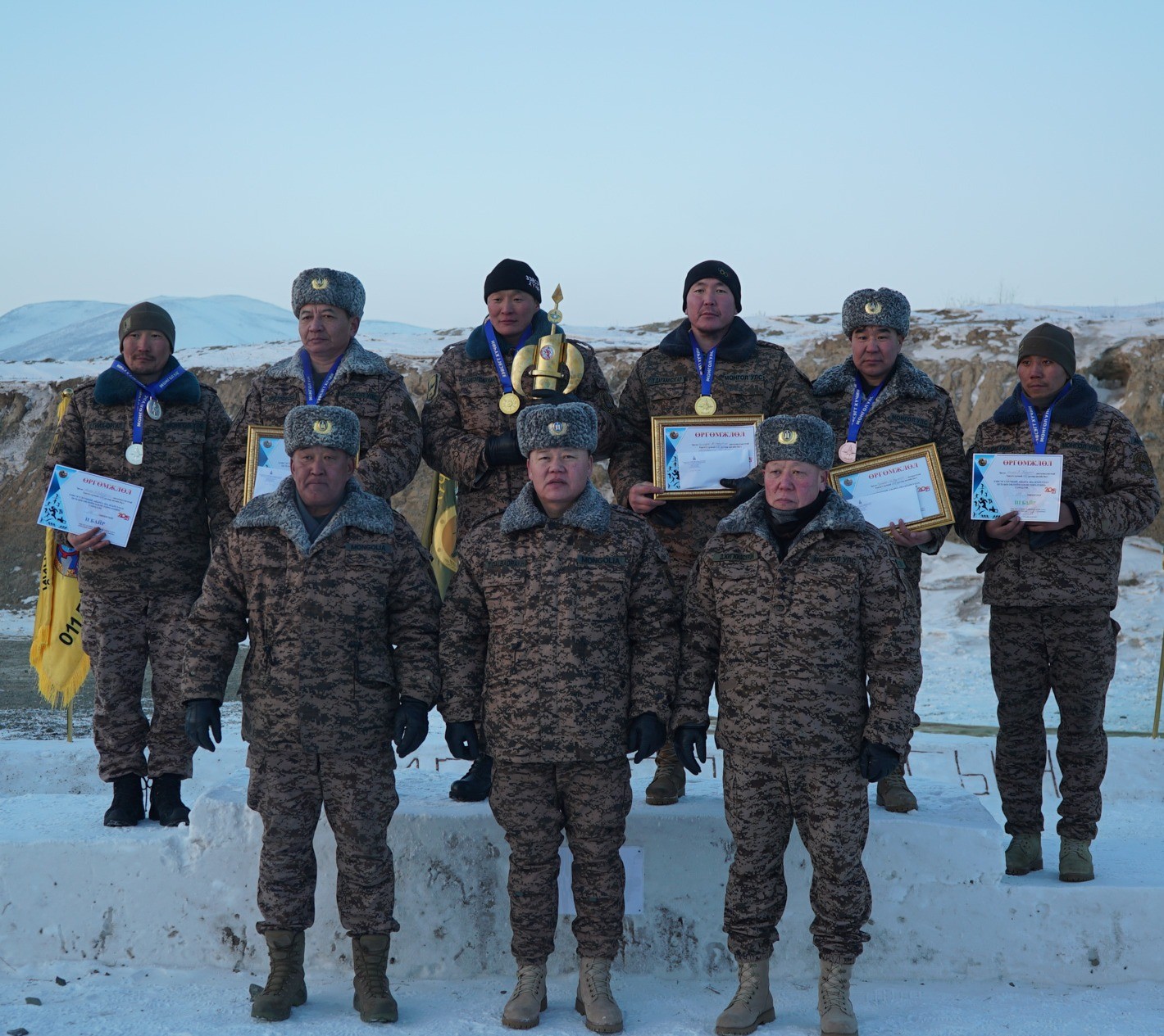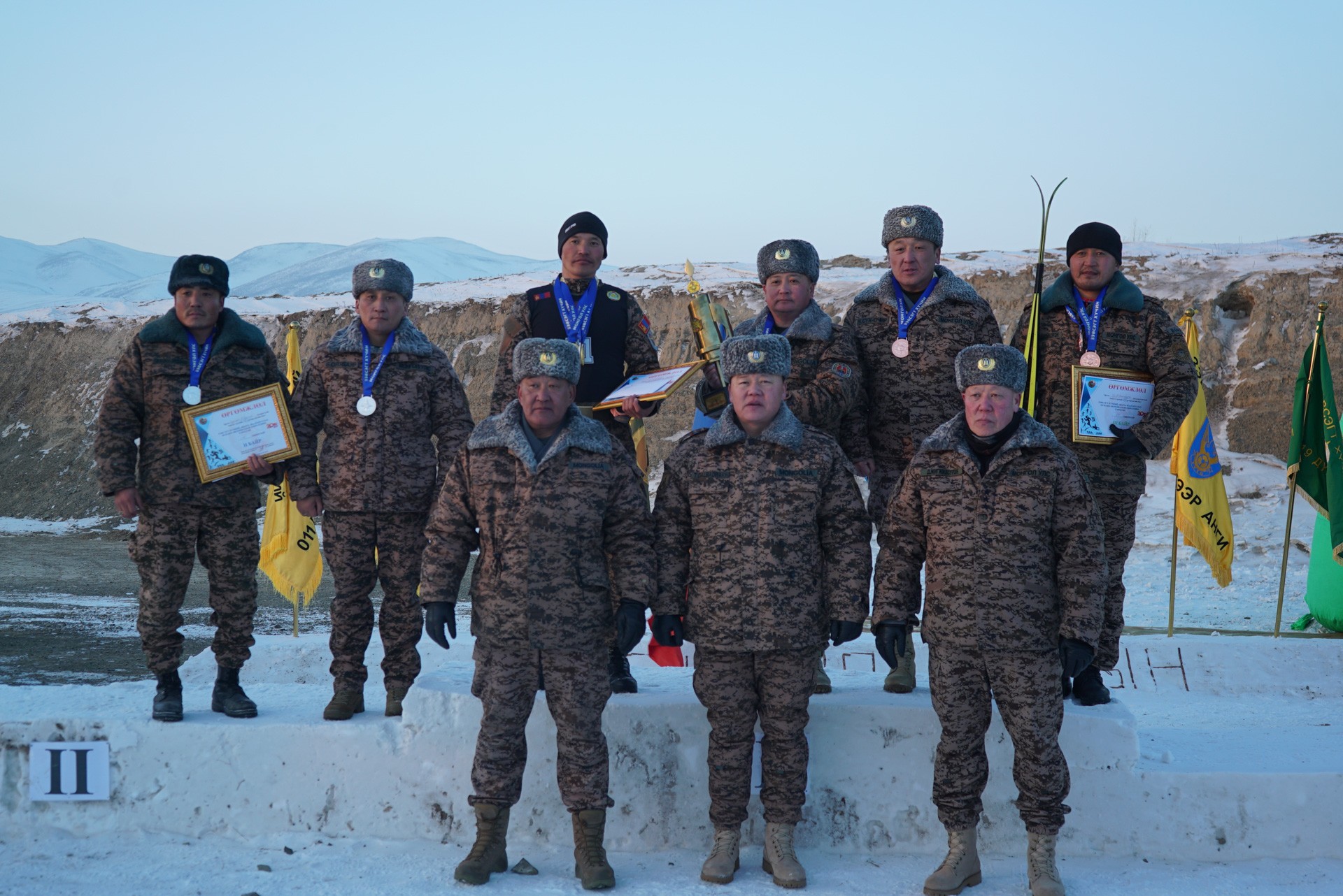 -Тэргүүн байрт Зэвсэгт хүчний 330 дугаар ангийн цэрэгжлийн спортын мастер, ахлагч С.Эрдэнэтовч, спортын мастер, ахлагч Э.Мөнх-Эрдэнэ, дэслэгч Б.Батзаяа, цэрэгжлийн спортын мастер, ахлах дэслэгч М.Цэрэндорж,