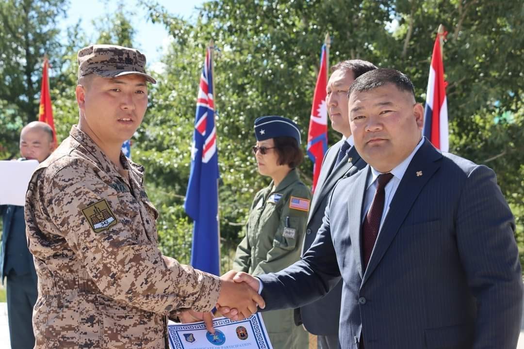 Монгол Улсын Зэвсэгт хүчин, Энэтхэг-Номхон далай дахь Америкийн Нэгдсэн Улсын командлалын Агаарын цэргийн хүчний хамтарсан “Энхийн элч-2023” олон улсын эмнэлэг, барилга-инженерийн хүмүүнлэгийн сургуулийн хаалтын ажиллагаа Архангай аймгийн Цэцэрлэг хотын Г.Дэмид жанжны талбайд боллоо.