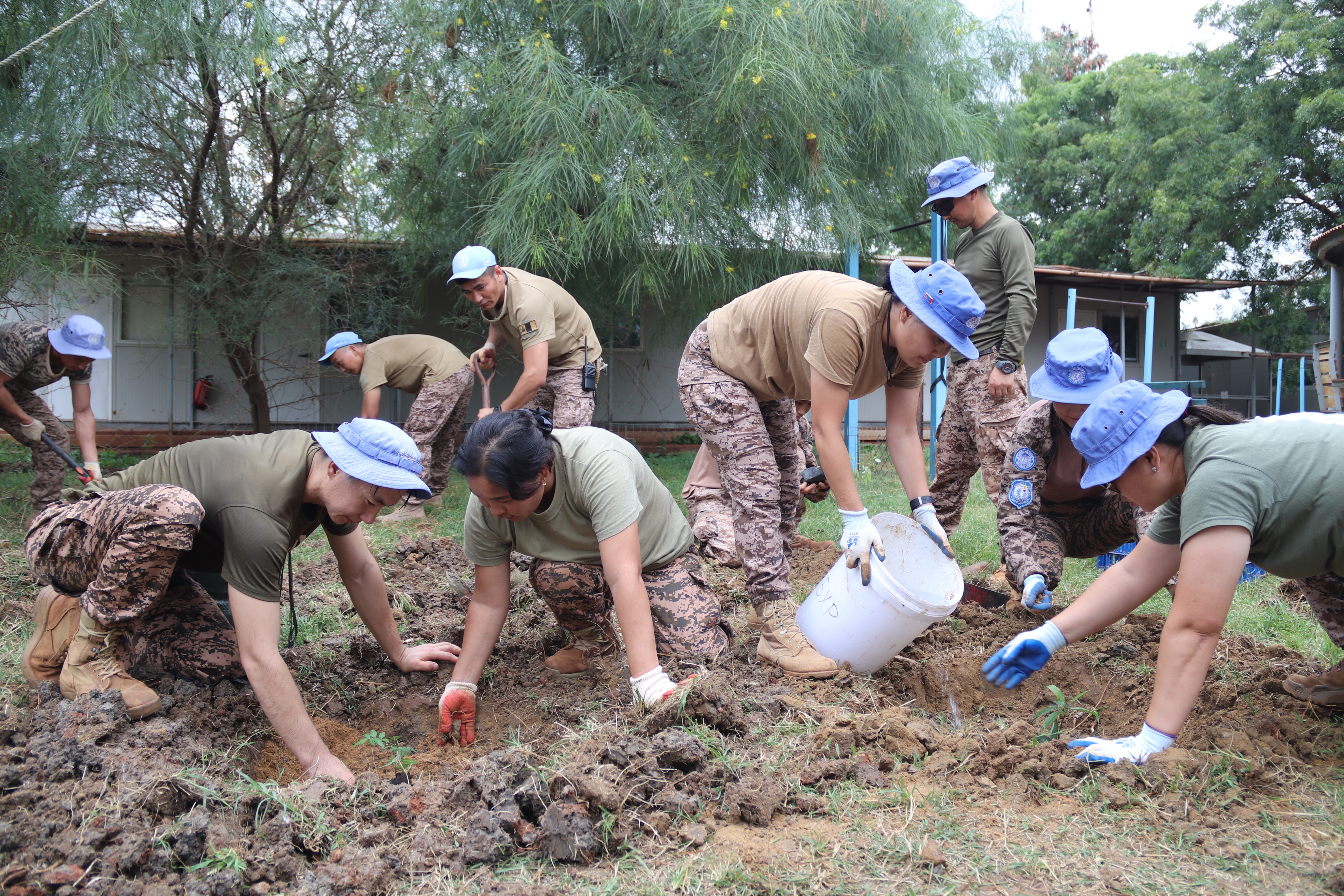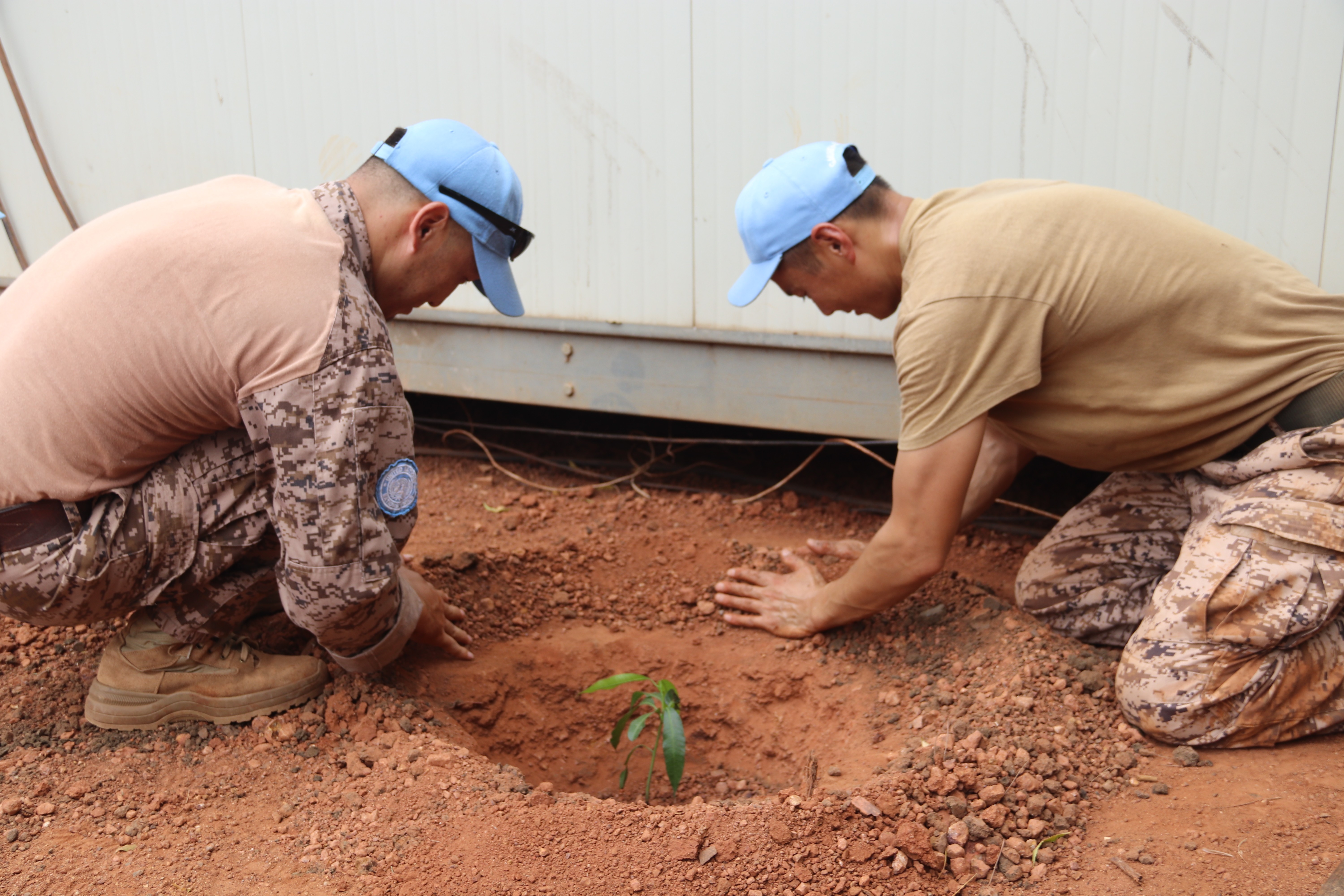 Тиймээс тус улсад энхийг сахиулах үүрэг гүйцэтгэж буй Монгол Улсын цэргийн багийн бие бүрэлдэхүүн уур амьсгалын өөрчлөлтийн сөрөг нөлөөлөл, ус, хөрс, агаарын бохирдлын улмаас үүссэн хүндрэл бэрхшээлийг багасгахад өөрсдийн хувь нэмрээ оруулах, байгаль орчныг хамгаалах, нөхөн сэргээж ногоон төгөл байгуулах зорилтыг дэвшүүлэн “Нэг энхийг сахиулагч-нэг мод” аяныг өрнүүлсний үр дүнд Хубилай, Сүбээдэй, Арвай, Эко, Дельта баазуудад 5 нэр төрлийн 850 ширхэг суулгацыг суулгалаа. Энэ ажилд цэргийн багийн нийт бие бүрэлдэхүүн идэвхтэй оролцлоо.