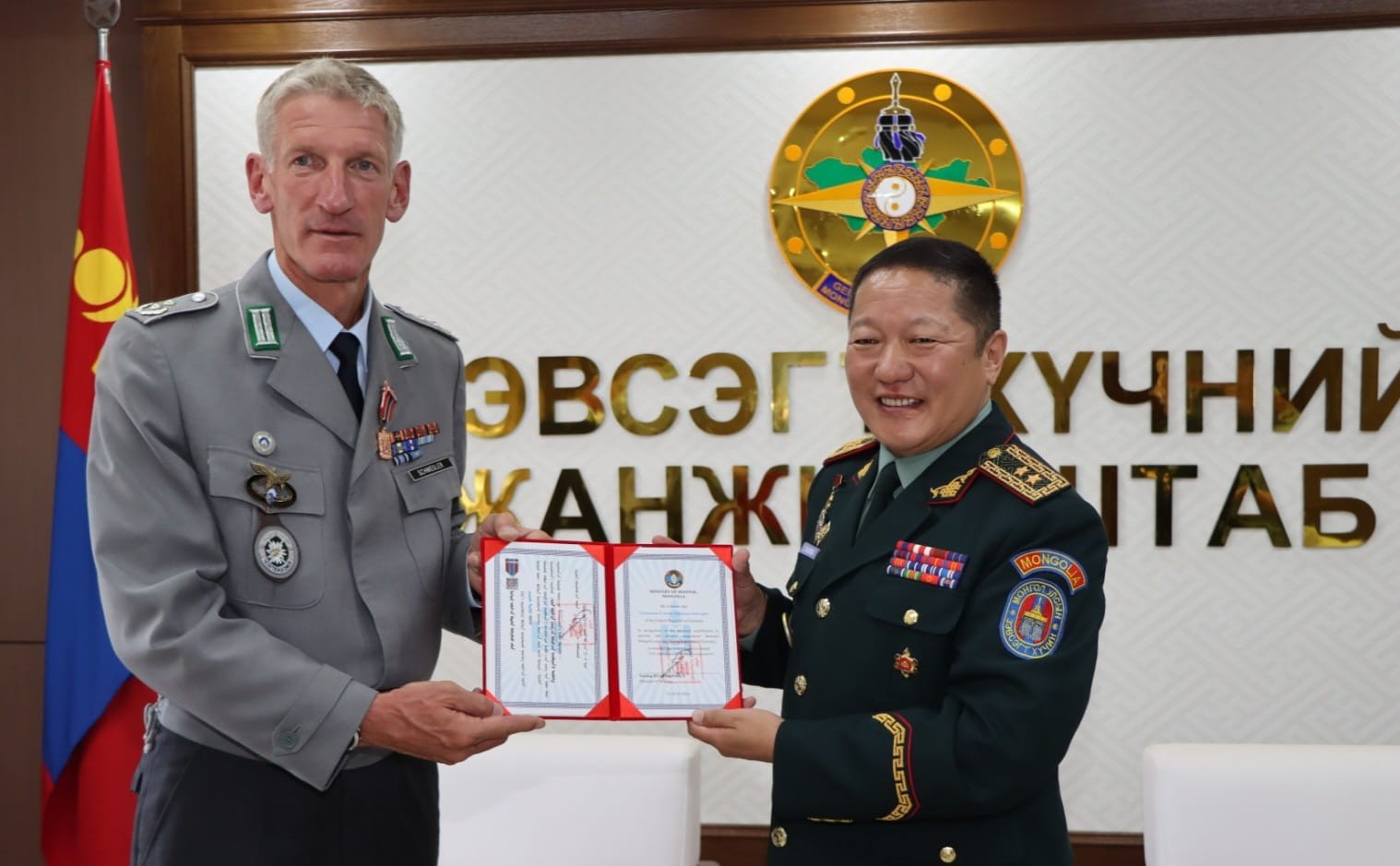 Холбооны Бүгд Найрамдах Герман Улсын Хуурай замын цэргийн 23 дугаар бригадын Уулын явган цэргийн сургалтын хөдөлгөөнт бүлгийн дарга дэд хурандаа Ёоханнэс Швеглэрийг Батлан хамгаалахын сайдын тушаалаар "Цэргийн хамтын ажиллагааны медаль"-аар шагналаа. Монгол Улсын Зэвсэгт хүчний Жанжин штабын дарга хошууч генерал С.Ганбямба түүнд энэхүү хүндтэй шагналыг гардуулж, баяр хүргэв.