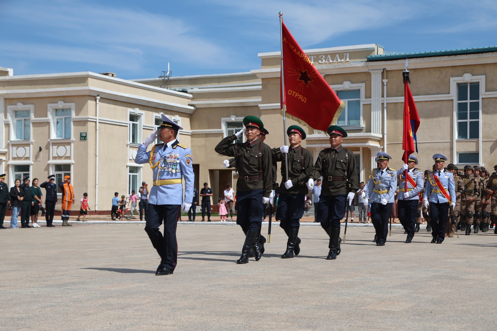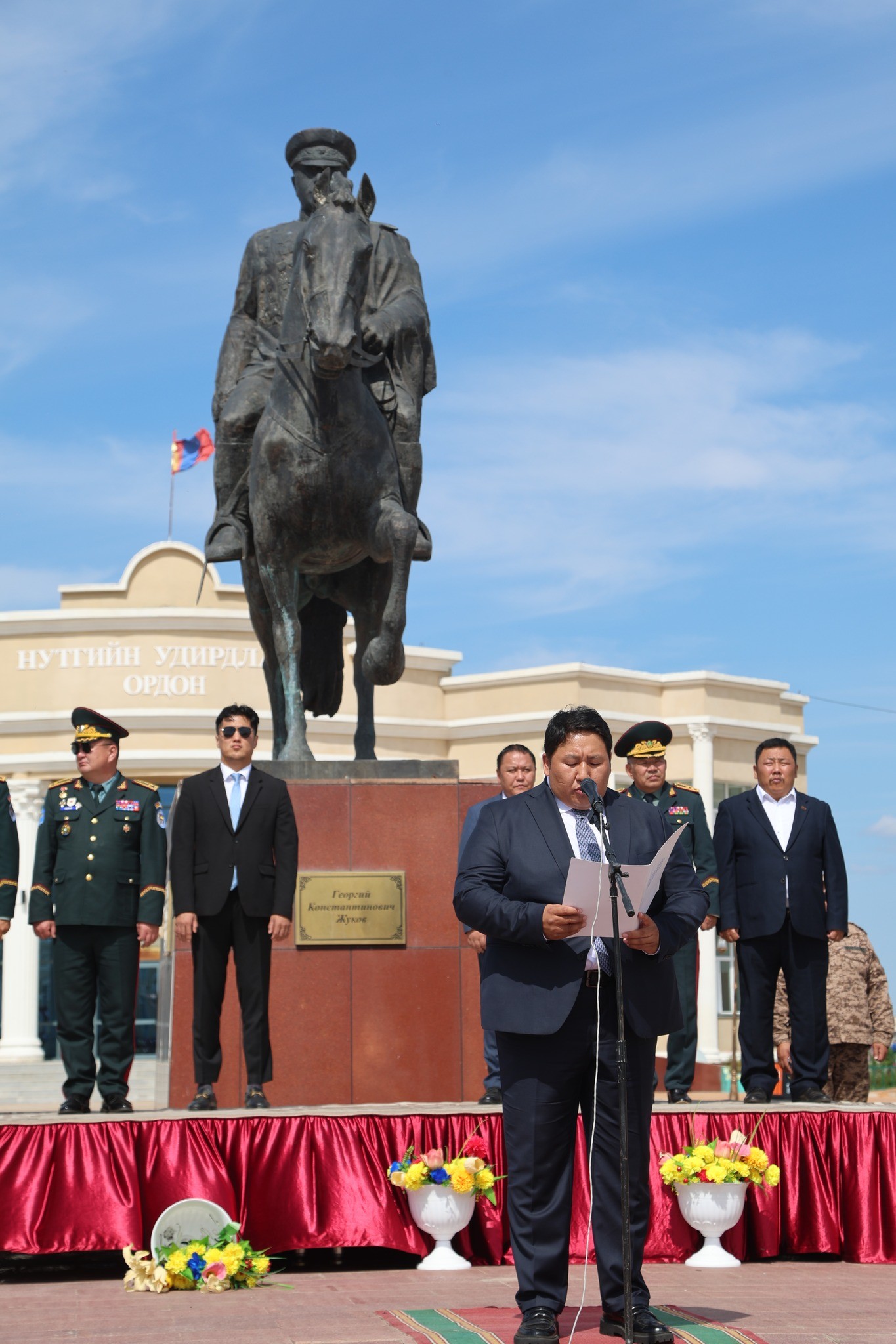 Уг хүндэтгэл, ёслолын ажиллагаанд ҮАБЗ-ийн нарийн бичгийн дарга А.Бямбажаргал, Ажлын албаны дарга хошууч генерал Д.Ариунболд, ЗХЖШ-ын орлогч дарга бригадын генерал Б.Баатар, ойг тэмдэглэн өнгөрүүлэх комиссын нарийн бичгийн дарга, БХЯ-ны газрын дарга хурандаа Р.Энхболд, ХХЕГ-ын дарга, Хилийн цэргийн командлагч хошууч генерал Х.Лхагвасүрэн нарын албаны төлөөлөгчид, орон нутгийн удирдлагууд оролцлоо.