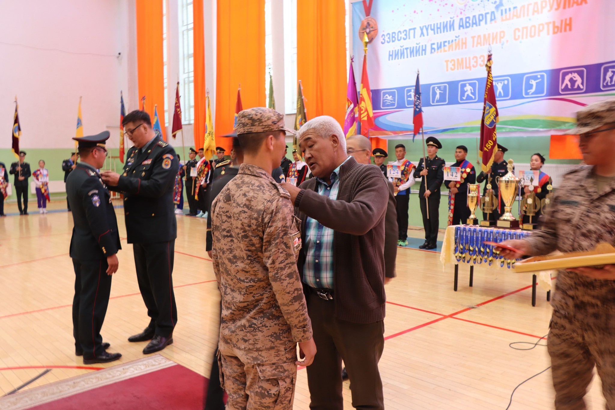 Мөн энэ үеэр Цэрэгжлийн спортын төрөлд Монгол Улсын Спортын мастер, дэд мастерын болзол хангасан Зэвсэгт хүчний зарим тамирчдад мастерын үнэмлэх, тэмдгийг хүндэт зочид гардуулсан юм. Энэхүү нээлтийн ажиллагаанд Цэргийн дуу бүжгийн эрдмийн чуулгын гоцлол дуучин МУГЖ Б.Батбаатар, дуучин н.Мөнхдэмбэрэл нар Зэвсэгт хүчний тамирчин дайчдадаа амжилт хүсэж, ая дууны мэндчилгээ дэвшүүллээ.