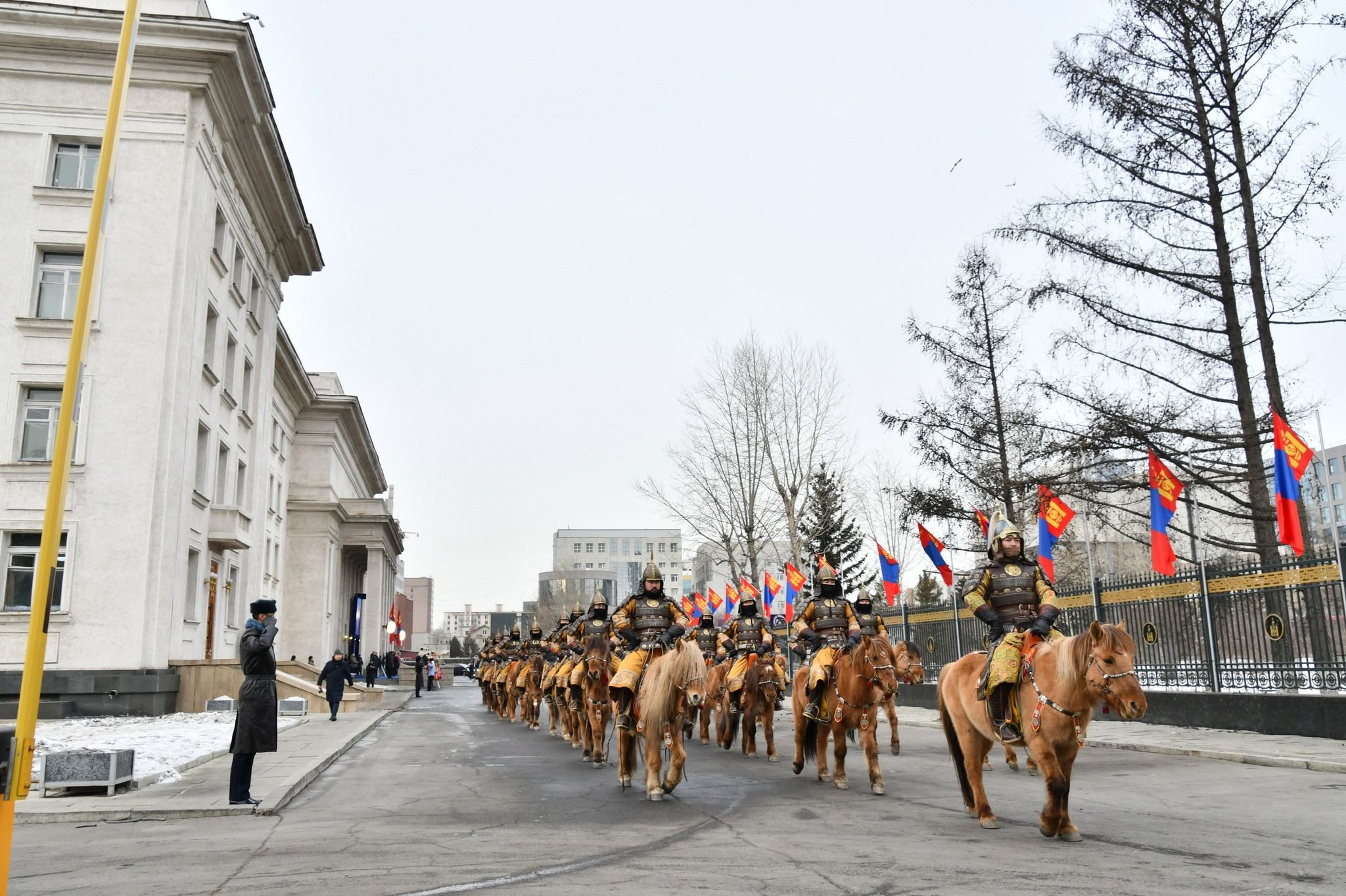 Уг хүндэтгэл үзүүлэх Төрийн ёслолын ажиллагаанд Зэвсэгт хүчний 032, 142, 120 дугаар ангиуд үүрэг гүйцэтгэж, хүндэт бараа бологчоор Тусгай хүчний цэргийн командлал, Хуурай замын цэргийн командлал, Хил хамгаалах Ерөнхий газар, Дотоодын цэргийн штаб, Онцгой байдлын Ерөнхий газрын 54 хүний бүрэлдэхүүнтэй салбарууд томилогдон оролцож, хүндэтгэл үзүүллээ. Мөн энэ өдөр ЗХЖШ, төрлийн цэргийн командлал, Удирдах газар, Зэвсэгт хүчний нэгтгэл, анги, салбарууд дуут тохиогоор 12.00 цагт гашуудал илэрхийлж, нэг минутын туршид хүндэтгэл үзүүлсэн юм.