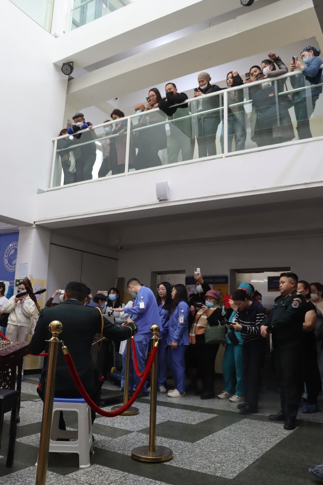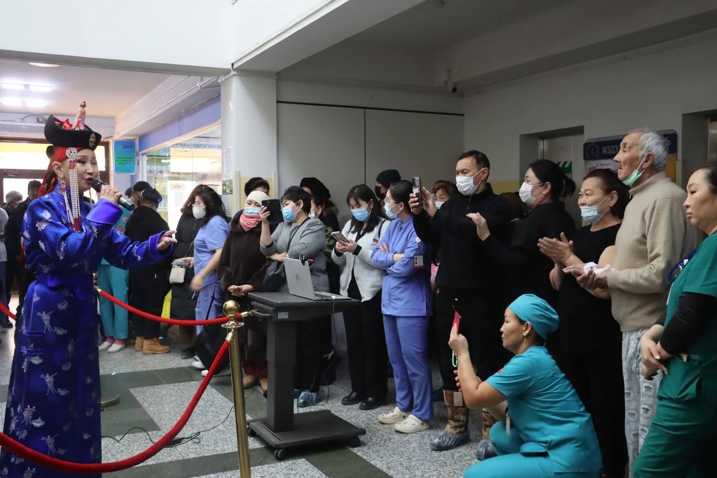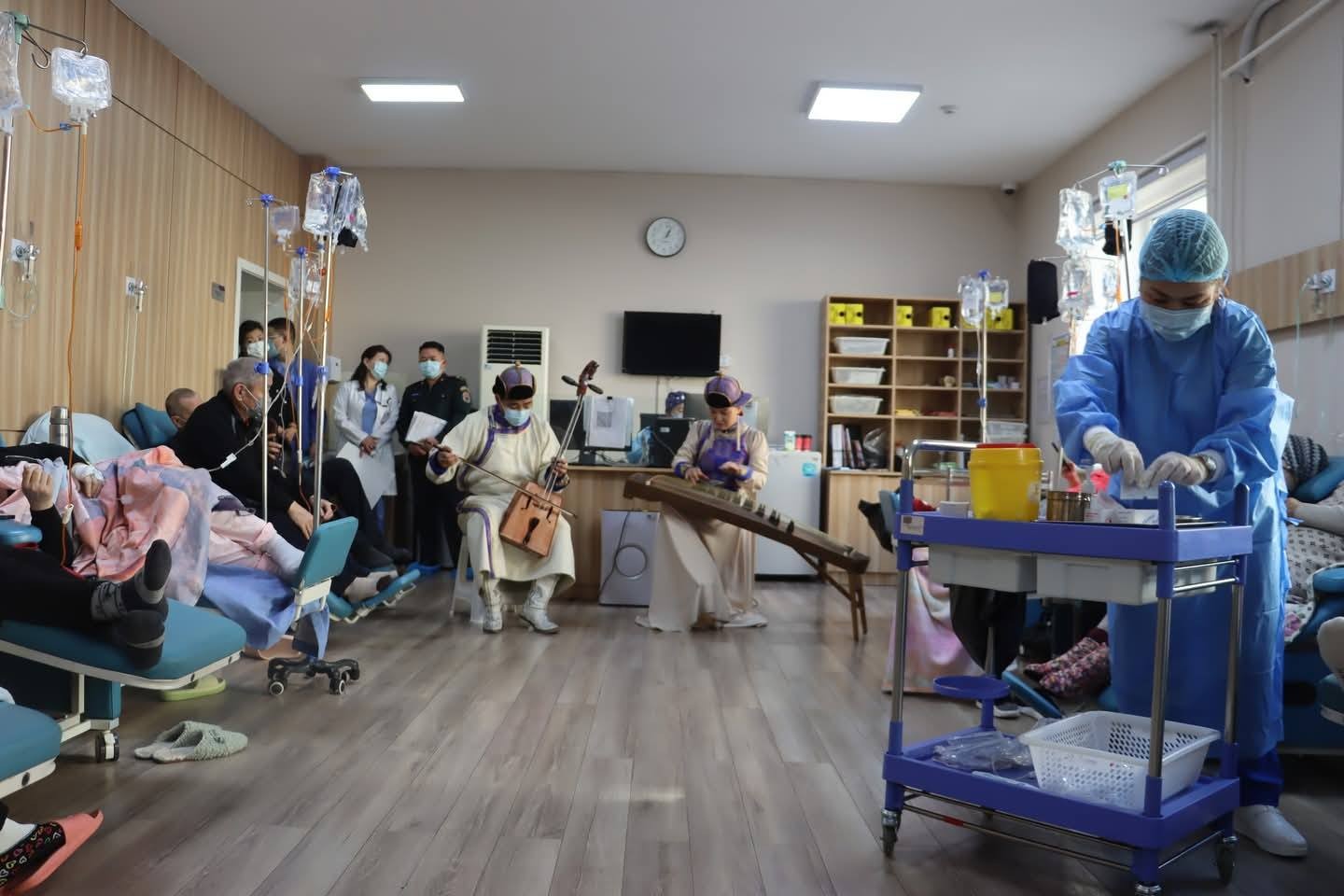 Өнөөдөр Цэргийн дуу бүжгийн Эрдмийн чуулгын Үндэсний хөгжмийн албаны уран бүтээлчид Хавдар судлалын үндэсний төвийн “Хавдрын эсрэг хөгжмөөр нэгдэцгээе” хөгжим эмчилгээний хөтөлбөрийн хүрээнд ардын сайхан дуу, аялгуугаар эмнэлгийн үйлчлүүлэгчид хийгээд тэдний ар гэрийнхний сонорыг мялааж, сэтгэлийг анагаах эмчилгээ үйлчилгээ үзүүлэв.