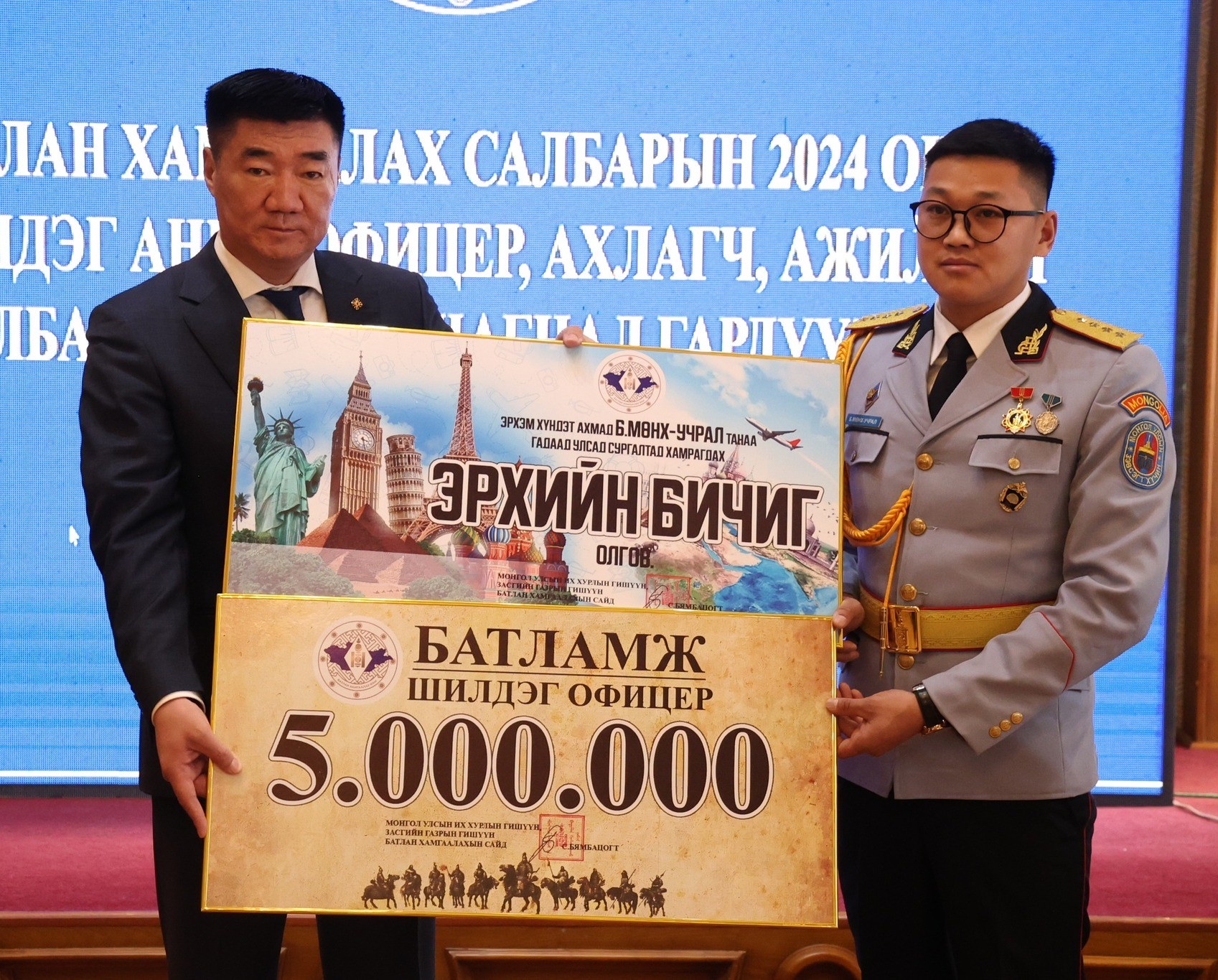Батлан хамгаалах салбар 2024 онд амжилт бүтээл, идэвх зүтгэлээрээ манлайлсан "Шилдэг анги, офицер, ахлагч, ажилтан албан хаагч"-даа тодруулж, сайшааж урамшууллаа. Батлан хамгаалах салбарын 2024 оны "Шилдэг анги"-иар хурандаа Н.Гүрбадам захирагчтай, Жанжин Д.Сүхбаатарын нэрэмжит Байлдааны гавьяаны улаан тугийн одонт Зэвсэгт хүчний 336 дугаар анги, "Шилдэг офицер"-оор Зэвсэгт хүчний 065 дугаар ангийн Тоон систем электрон автоматжуулалтын тасгийн мэдээллийн системийн инженер ахмад Б.Мөнх-Учрал, "Шилдэг ахлагч"-аар Зэвсэгт хүчний 335 дугаар ангийн Сургалтын тасгийн сургалтын ахлагч ахлах ахлагч Х.Түвшинбаяр, "Шилдэг ажилтан алба хаагч"-аар ҮБХИС-ийн Эрдэм шинжилгээний мэргэжилтэн доктор (Ph.D), профессор Д.Энхчимэг нар шалгарлаа.