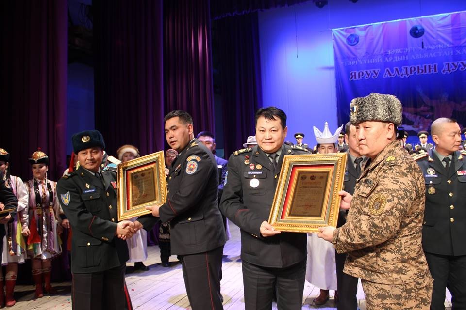 “Тэргүүний ардын авьяастан хамт олон” шалгаруулан урлагийн үзлэгт амжилттай оролцсон 16 офицер, ахлагч, ажилчин албан хаагчдыг Батлан хамгаалахын сайдын тушаалаар “Дайчин алдар II”, “Дайчин алдар III” медаль, “Эх орны төлөө II”, “Эх орны төлөө III” хүндэт тэмдгээр шагналаа.