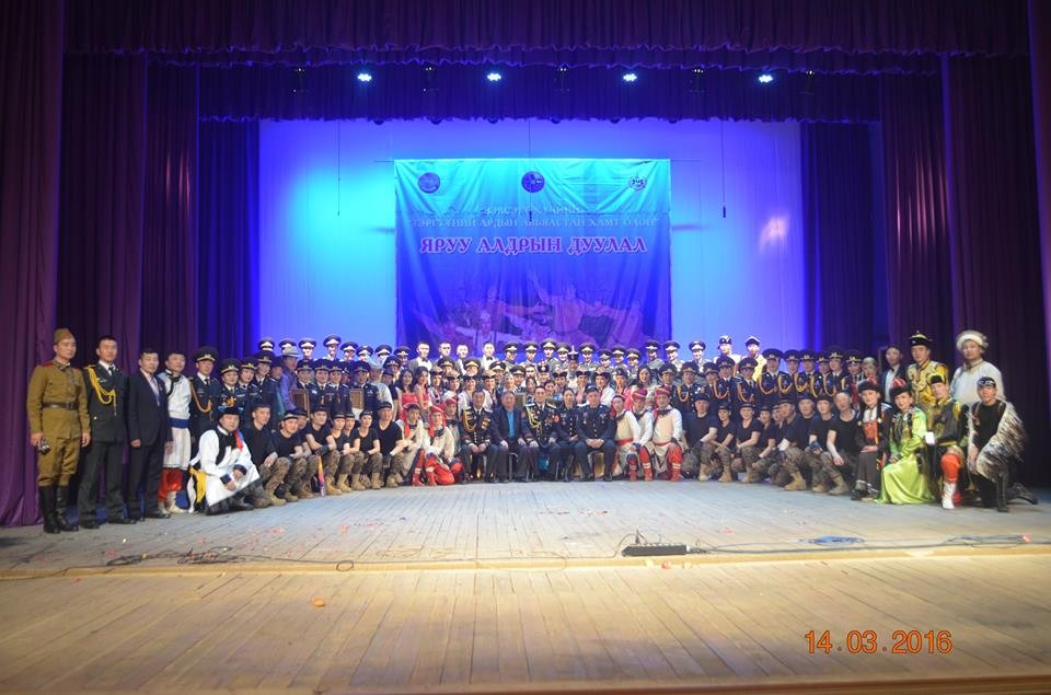 Зэвсэгт хүчний "Тэргүүний ардын авьяастан хамт олон" шалгаруулах урлагийн үзлэгт шалгарсан уран бүтээлчдийн "ЯРУУ АЛДРЫН ДУУЛАЛ" урлагийн нэгдсэн тоглолтыг 2016 оны 3 дугаар сарын 14-ний өдөр ЦДБЭЧ-ын концертын танхимд амжилттай зохион байгуулж явууллаа.