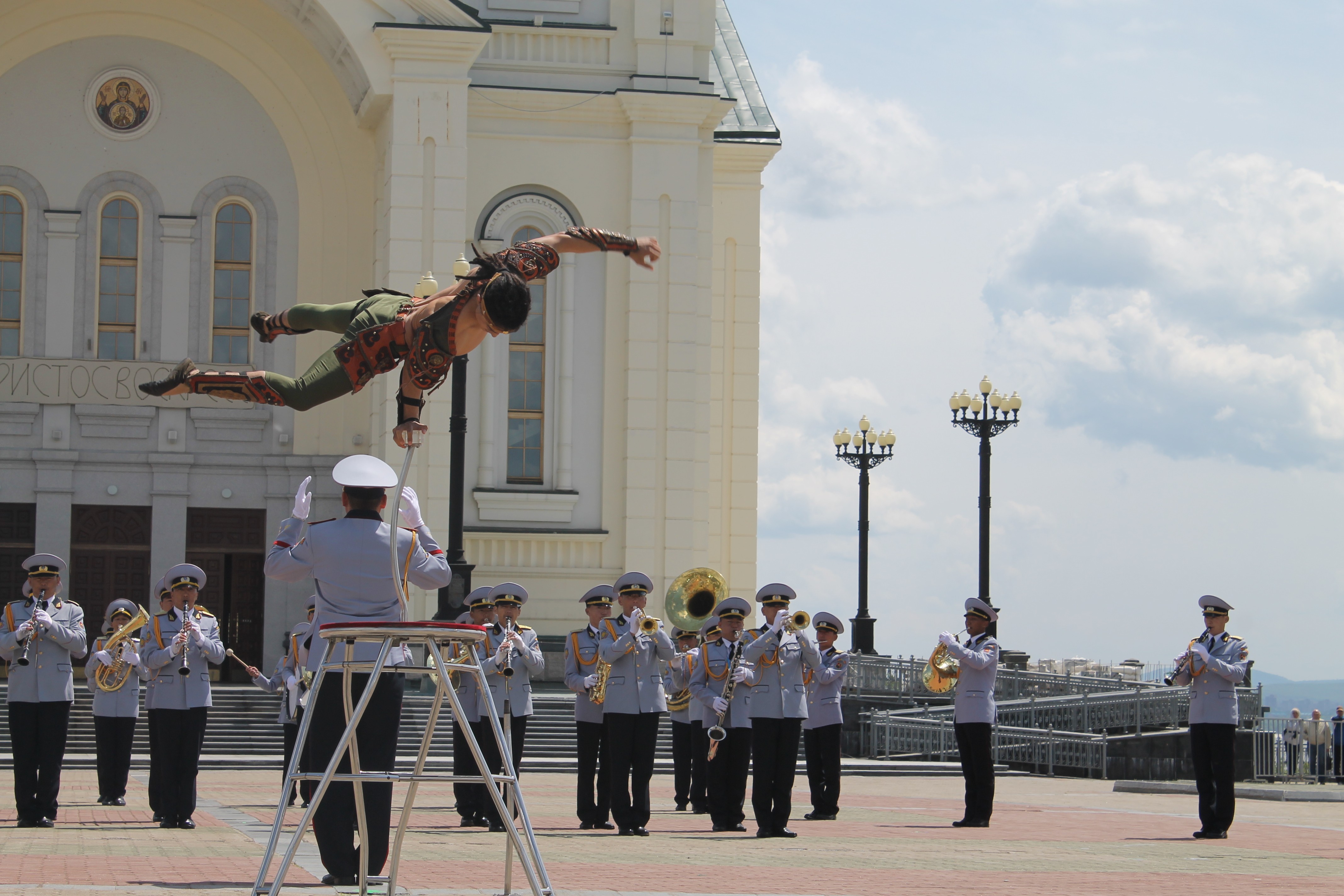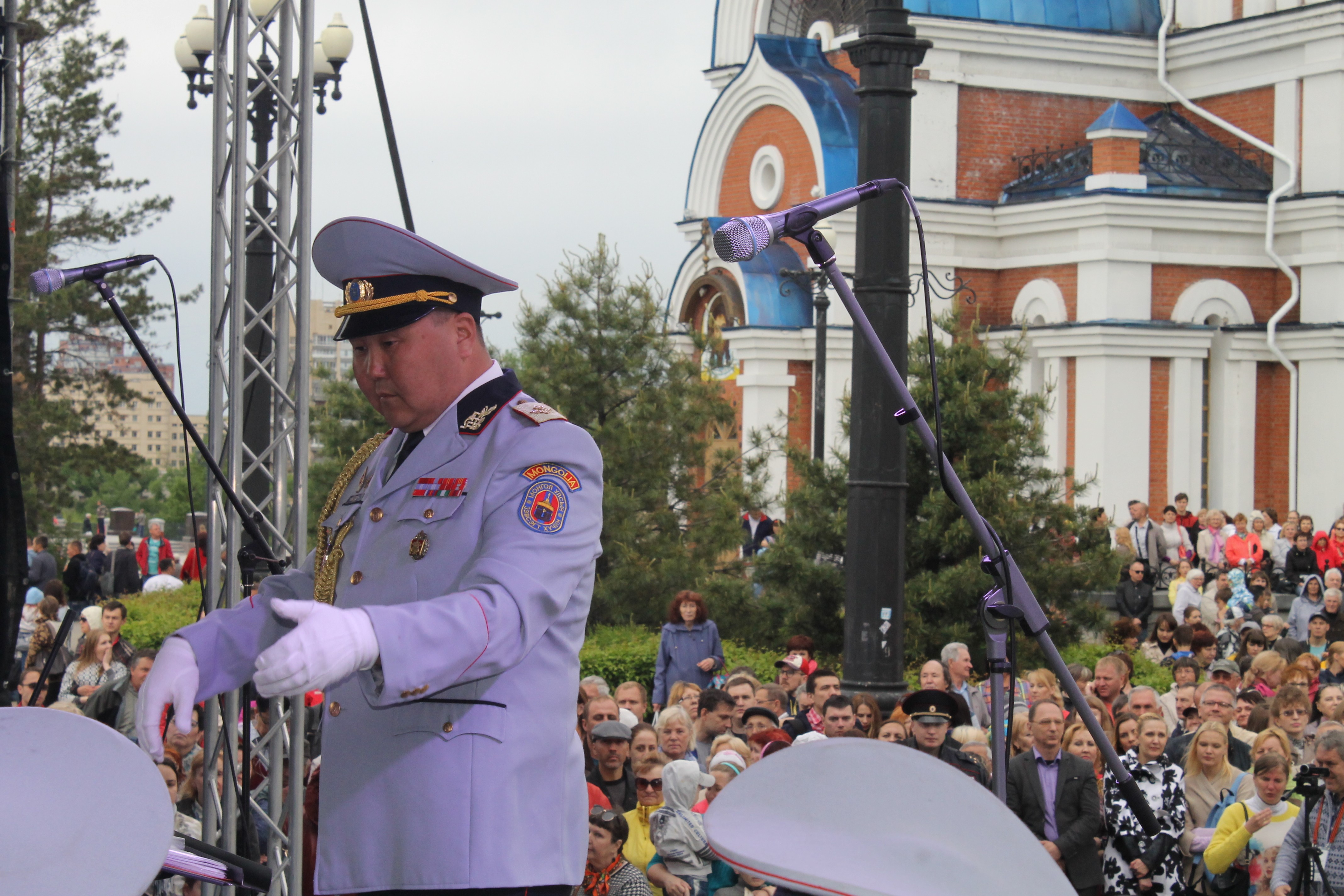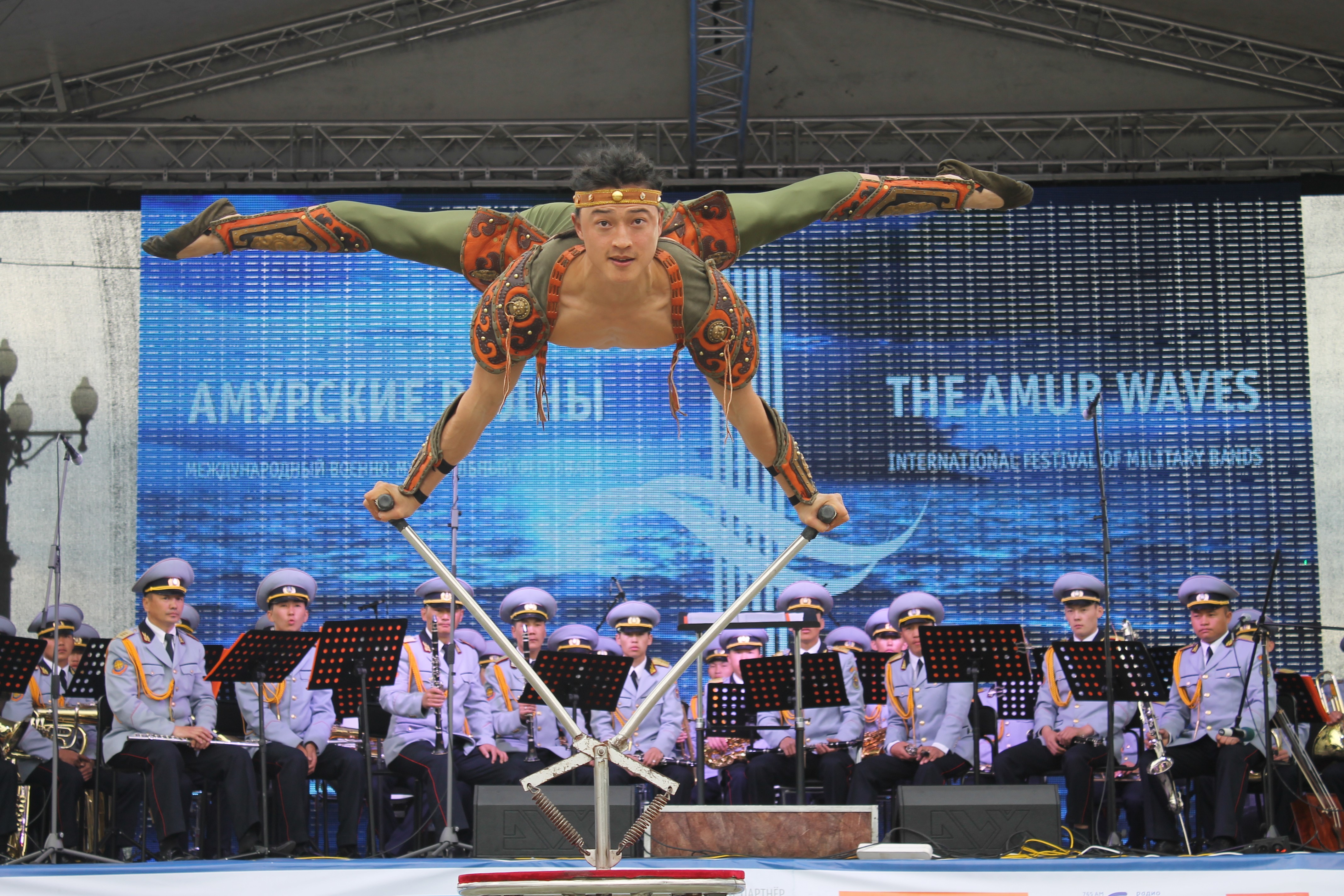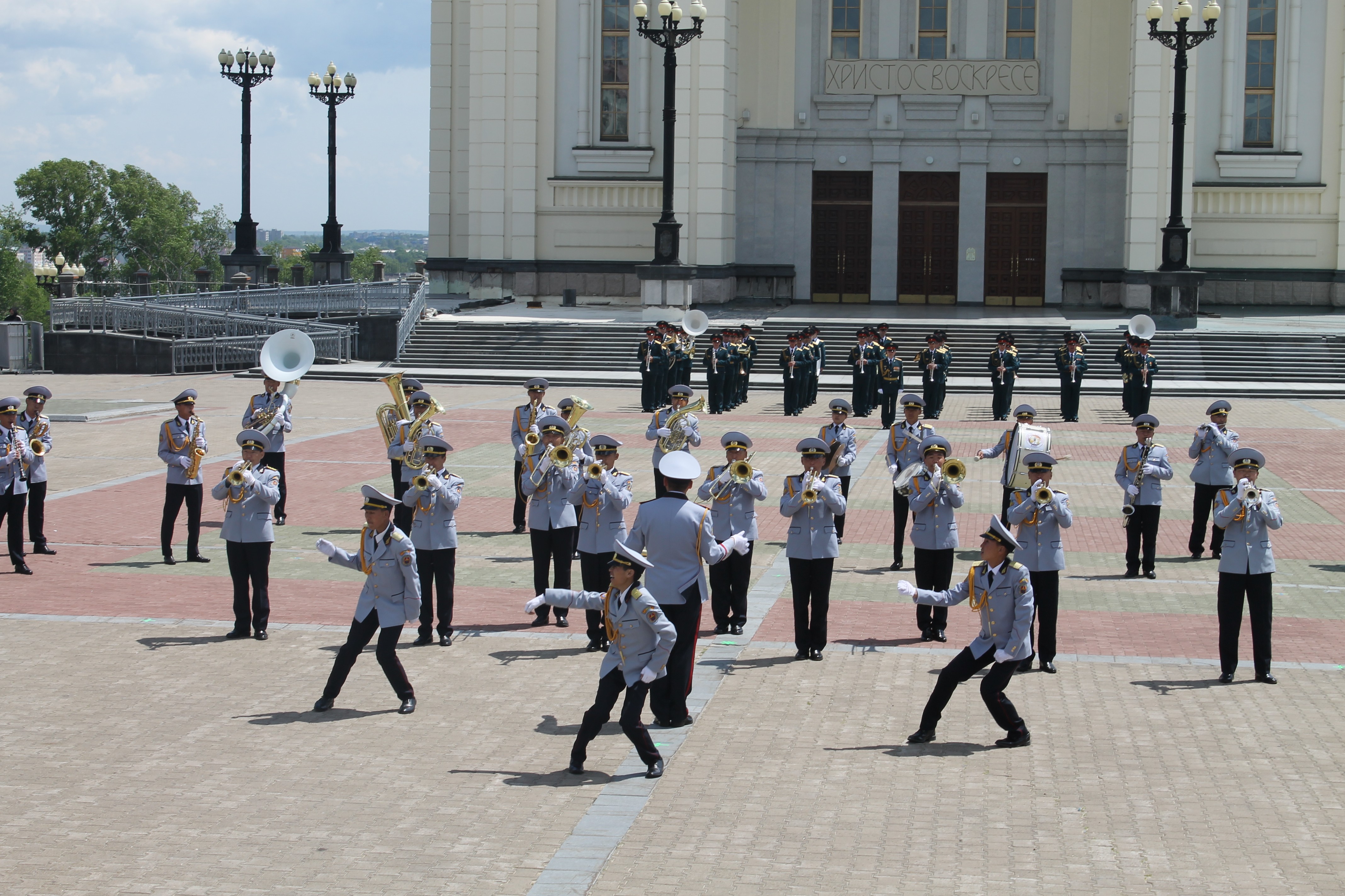 Энэхүү гудамжаар явж буй орон тус бүрийн хөгжимчид өөрийн улсын нэрт хөгжмийн бүтээлүүдээс сонирхуулахын хамт хэд хэдэн цэгт түр зогсолт хийж, өөрсдийн бэлтгэсэн үзүүлбэрийг сонирхуулж байлаа. Тэр үеэр хотын бүх хүмүүс цуглав уу гэлтэй, уртаар үргэлжлэх замын хоёр тал үзэгчдээр дүүрэн байсан нь гайхалтай. Үүний дараа залуучуудын талбайд тусгайлан зассан тайзнаа Монгол, Сингапур, Хятадын хөгжимчид өөрсдийн тусгайлан бэлтгэсэн концертыг тоглосон ба бид 45 минутын концертыг үзүүлэхэд үзэгчдийн сэтгэл ихэд хөдлөн байлаа. Учир нь манай хөгжимчид өөрийн орны хөгжмийн бүтээлээс сонирхуулж, морин хуурын гоцлолыг үзүүлсний дээр голлон Оросын алдарт зохиолчдын хөгжмийг уран чадварлаг тоглосон нь тэдэнд ойр байсан бизээ. Энэ тоглолтын үеэр тоглосон алдарт хөгжмийн бүтээлүүдийг Монгол Улсын Соёлын болон Боловсролын тэргүүний ажилтан, хөгжмийн зохиолч, хурандаа Т.Мөнхтунгалаг, ЗХЖШ-ын Үлгэр жишээ үлээвэр найрал хөгжмийн сургалт, соёл хүмүүжил эрхэлсэн орлогч, ахмад Б.Нэргүй, Цэргийн хөгжмийн сургуулийн тэнхимийн дарга хошууч Б.Анхбаяр, ахлах багш хошууч Д.Одгэрэл нар удирдан манай хөгжимчид гайхамшигтайгаар тоглож билээ.