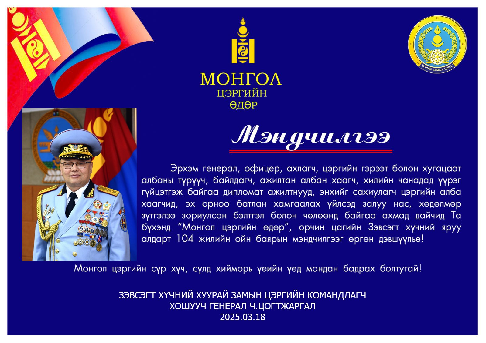 "МОНГОЛ ЦЭРГИЙН ӨДӨР"-ИЙН БАЯРЫН МЭНД ӨРГӨН ДЭВШҮҮЛЬЕ!