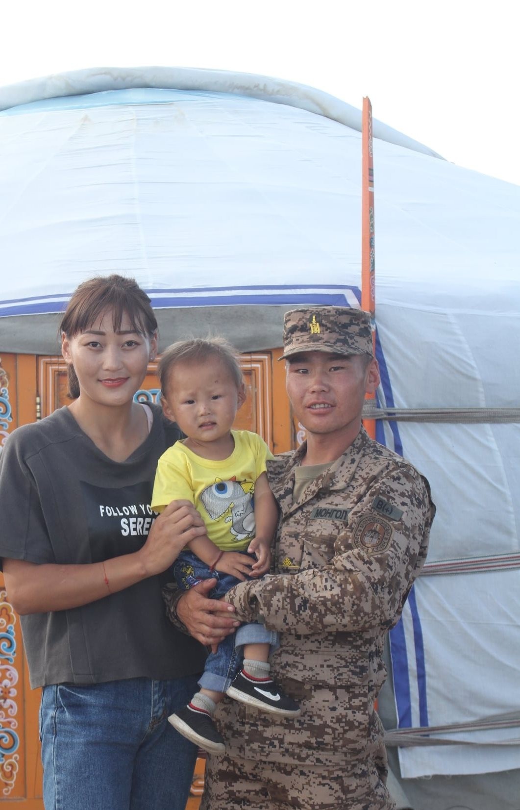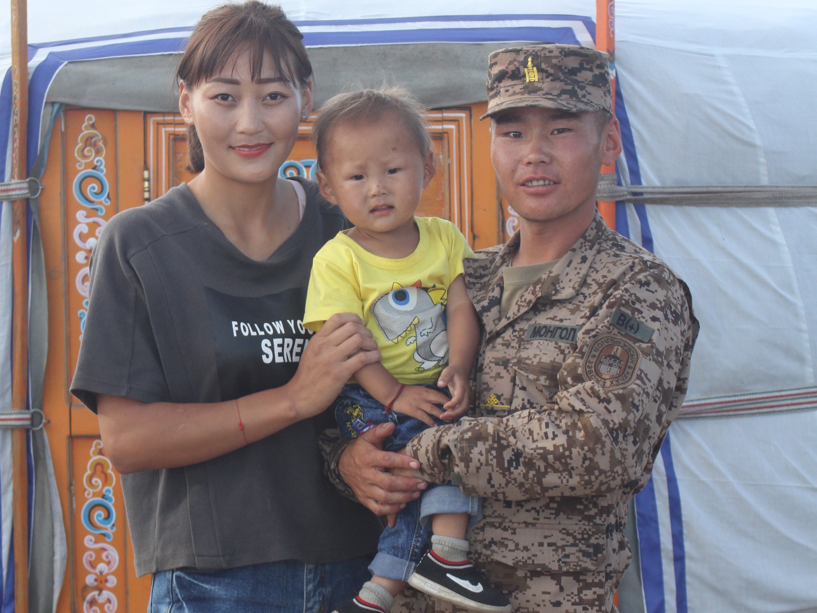 Бидний хамгийн эхэнд онцлох алба хаагч бол цэргийн гэрээт алба хаагч, байлдагч Ж.Буяндэлгэр. Байлдагч Ж.Буяндэлгэрийн ажлыг нь тарахтай зэрэгцэн гэрт нь хамт очлоо. Цэргийн гэрээт алба хаагчдын алба хаах хууль, эрх зүйн орчин, нийгмийн хамгааллыг нь ЗХЖШ-аас шат дараатай дээшлүүлж буй учир тэд яг л байнгын бүрэлдэхүүн шиг ажлын 8 цагаар ажиллаад гэртээ харьдаг болсон нь энэ. Гэрийн гадаа нь очиход дөнгөж ой шүргэж байгаа гэмээр бяцхан хүү “Аав аа!” гэсээр тэнтэр тунтар алхсаар ирсэн нь түүний хүү Б.Жаргалбаяр ажээ. Ж.Буяндэлгэрийнх нь аавын гэрээс өрх тусгаарлаад дөнгөж 10 хонож байсан бөгөөд цоо шинэ өргөө цагаан гэр барьжээ. Түүний гэргий П.Минжинсор “Ханиа өнөөдөр гэрээ овоо сайхан төвхнүүллээ. Хардаа, чи минь” гэсээр инээмсэглэл дүүрэн угтав.