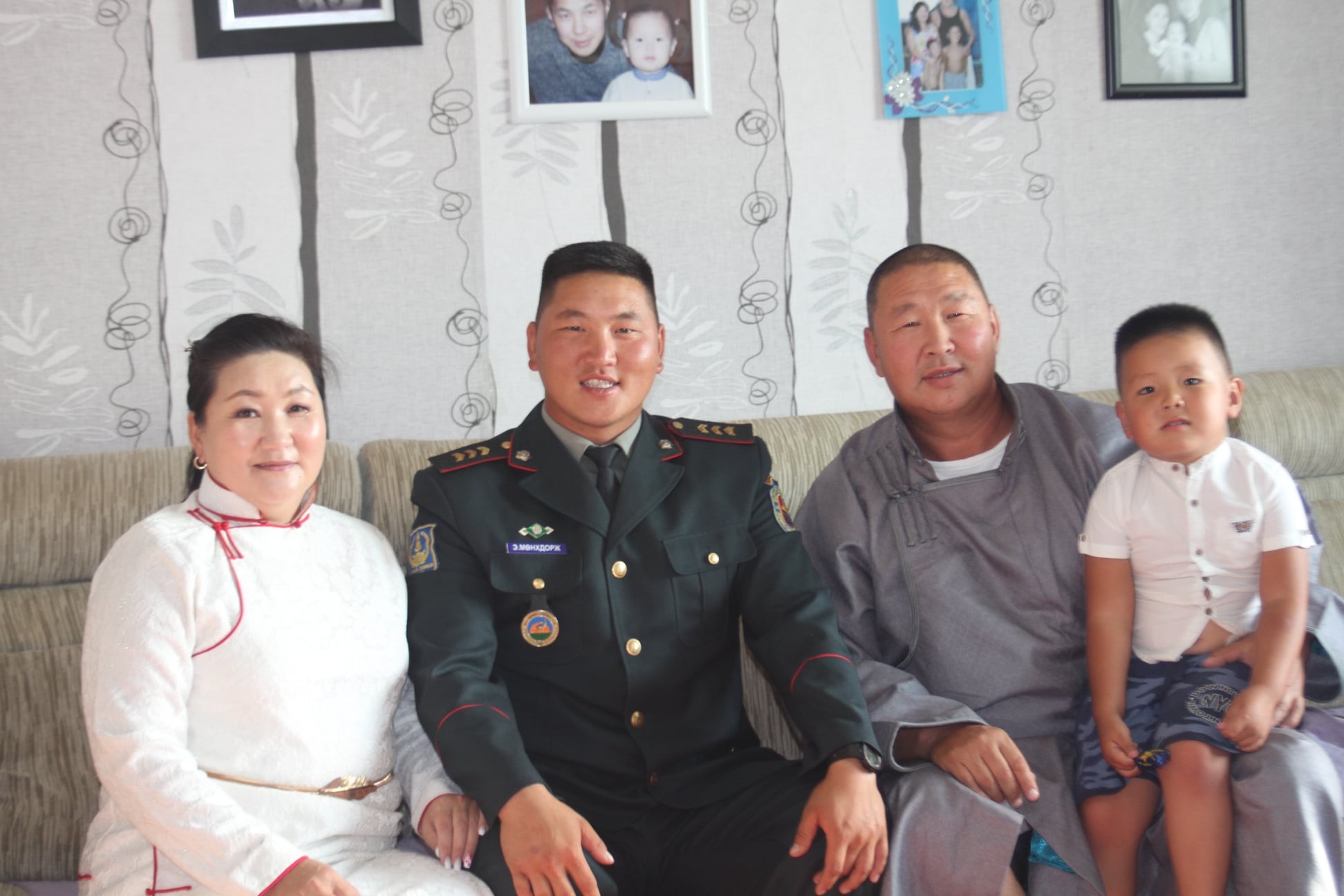 Хүүгийнхээ яриаг анхааралтай чагнаж суусан түүний аав Р.Энхбаатар ах “Петровис” компанид ээлжийн түгээгчээр ажилладаг байна. Тэрээр хоёр жилийн цэргийн алба хаасан бэлтгэл үүрэгтэн. Хүүгээ цэргийн хүн болоход нь ихэд баярласан, өдгөө бүр сайн яваад нь бүр ч их баярлаж явдгаа хуучлаад цэргийн алба эрчүүдийг зөв хүн болгон төлөвшүүлэхэд асар үүрэгтэй салбар хэмээн онцолсон. Харин түүний хань, ахлах ахлагчийн ээж Ө.Ганзул боловсролын салбарт насаараа ажиллаж байгаа эмэгтэй байна. Орос хэлний багш гэнэ. Тэд хоёр хүүтэй. Том хүү Жамсранжав ч гэсэн ялгаагүй спортоор хичээллэдэг, сагсан бөмбөгөөр аймгийн хоёр удаагийн аварга ажээ. “Өөрийгөө сумын заануудын дунд амьдрах их сайхан хувь тохиолтой гэж боддог. Гэхдээ хүү маань энэ амжилтад цадаж болохгүй. Улсын цолтон болоосой гэж хүсдэг. Цэргийн алба нь спортоор хичээллэдэг хүүхдүүдийг улам л хөгжүүлдэг сайхан алба юм” хэмээгээд ач хүү, дөрвөн настай Ж.Өнөмөнхөө харснаа “Манай эрх хүү бөхийн удмыг маань үргэлжлүүлдэг л байгаа даа” хэмээн өхөөрдөн инээмсэглэлээ.
