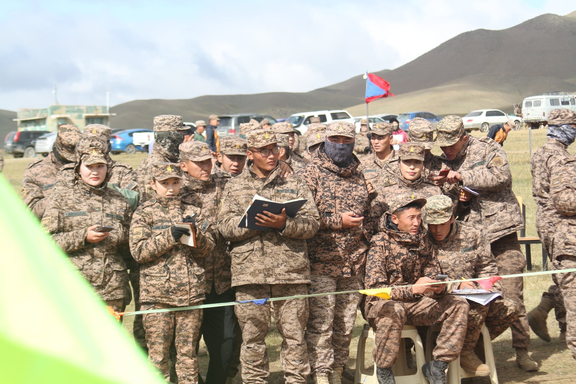 Нэгтгэл, анги бүрээс л нэг, нэг алба хаагч гараа, барианы цагийг “яс” тэмдэглэж, нэгэндээ хяналт тавьж байгаа учир ямар нэгэн маргаан гарах үндэслэлгүй харагдаж байв. Гарааны эхний багууд барианы ойролцоо бэлтгэлээ хангаж байхад, гарааны сүүлийн багууд Хужирбулангийн Сургалтын төвийг тойрч гүйж, бэлтгэлээ улам чамбайруулаад л ёстой олимпын тавцан аятай сүртэй сайхан харагдаж байлаа. Баг тамирчдаа хөгжөөн дэмжихээр нэгтгэл, ангиудын захирагч болон штабын дарга нар ч ирсэн байх агаад тэд гарааны өмнө тамирчиддаа эрч хүч, урам зориг өгч, алга ташиж баяр хүргэж байв. Зарим нь ч дурсгалын зураг татуулж “Медаль хүртсэнийхээ дараа дахиад зураг авахуулна шүү” гээд тэмцээндээ эмээж сандралгүй, тайван оролцохыг захиж байсан юм. Бас “Түрүүлэхдээ биш, оролцох нь чухал шүү, миний хүүхдүүд. Чадахаараа л зүтгэ” хэмээх цэргийн дарга ч цөөнгүй байлаа.