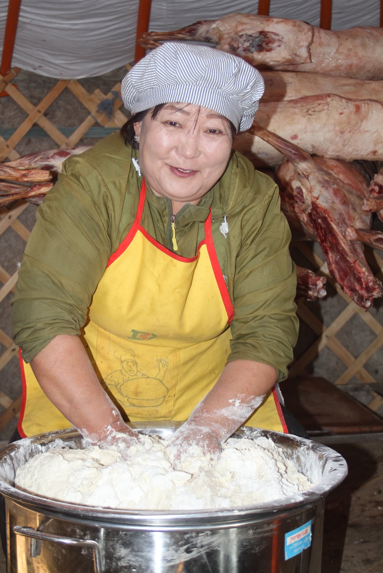 “Сэлэнгэ-2020” тактикийн хээрийн сургуулийн арын албанд Зэвсэгт хүчний Хуурай замын цэргийн командлалын Материал техникийн хэлтсийн материал хангалтын офицер, ахмад Г.Эрдэнэсүхээр ахлуулсан Ар талын бүлгийнхэн тун ч завгүй ажиллав. Арын дарга, ахмад залуу өглөө, оройгүй бараа бүтээгдэхүүнээ татан авч, тарааж, хуваарилаад л. Бүсгүйчүүд нь хоолоо бэлтгэн хийж, угаалга, цэвэрлэгээгээ хийгээд л. Зэвсэгт хүчний 167 дугаар ангийн ахлагч тогооч, ахлах ахлагч Ж.Дондогмаагаар ахлуулсан тогооч, бэлтгэгч бүсгүйчүүд гэхэд өдөрт дөрвөн удаагийн халуун хоол бэлтгэн, бие бүрэлдэхүүнд үйлчилж, хариуд нь “Баярлалаа” гэдэг үгийг ч харамгүй сонсов. Ахлах ахлагч Ж.Дондогмаа нь Зэвсэгт хүчинд 21 дэх жилдээ алба хааж байгаа бөгөөд “Сэлэнгэ” хээрийн сургуульд дөрөв дэх жилдээ, “Хааны эрэлд” олон улсын энхийг дэмжих сургуульд тав дахь жилдээ оролцсон хээрийн дадлага, сургуулиар туршлагажсан тогооч ажээ. Тэрээр хамт олноо анги, ангиас цугласан тогооч, бэлтгэгч нар ч гэсэн нэг сэтгэл, нэг зорилготой гар нийлэмжтэй сайхан хамт олон хэмээн магтчихаад алба хаагчдынхаа өдрийн хоолыг бэлтгэхээр ажилдаа гарав. Бэлтгэгч бүсгүйчүүдийн гэрээр орлоо. Зэвсэгт хүчний 186 дугаар ангийн нярав-талхчин С.Сарантуяа шуудай гурилыг том саванд хийгээд зуурч байна. Өдрийн зоог дээр нэгдүгээр хоолыг гамбиртай хамт өгөх гэнэ. Өдөр бүр л амттай талх эсвэл гамбир ирээд байдаг юм, цаад эзэн нь энэ бүсгүй байж. С.Сарантуяа талх, гамбираа хийхээр өглөө бүр шуудай гурил зуурч, хайрч, жигнэж, өдрийн зоог гэхэд бэлэн болгодог байна. Цэргийн алба хаагч бидний ширээн дээр бэлэн болоход дор хаяж 4-5 цаг зарцуулагддаг талаар тэр бас нэмж хэлэв. Амттай талхны эзэн энэ бүсгүй Зэвсэгт хүчинд алба хаагаад 26 жил болж байгаа юм байна.
