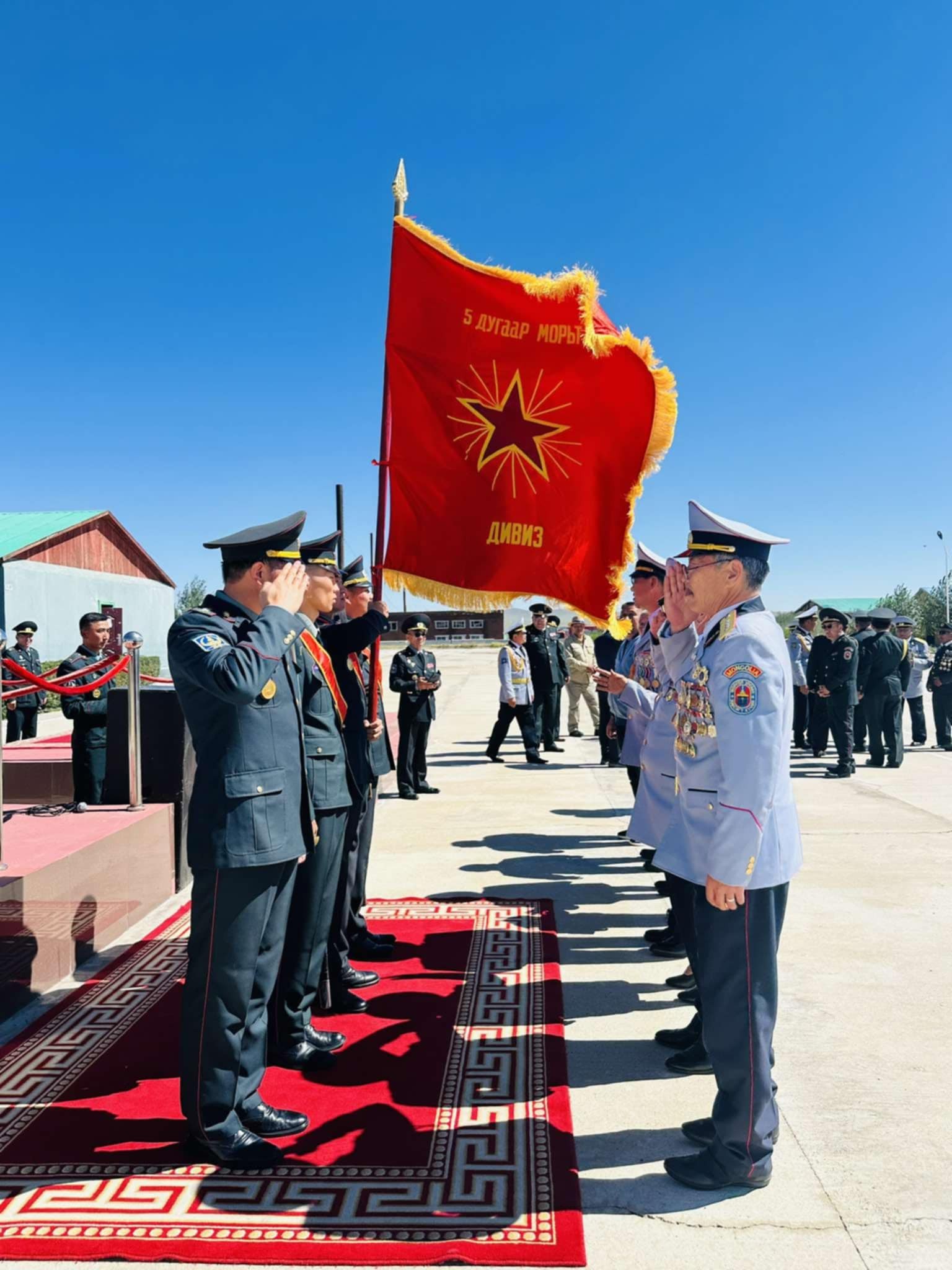 Энэ үеэр ангийн захирагч хурандаа М.Дэлгэрсайхан хэлсэн үгэндээ “Домогт 5 дугаар морьт дивизийн байлдааны туг нь 1939 оны Халхын голын байлдаан, 1945 оны Чөлөөлөх дайнд өнөөдрийн энх цагийн төлөө тулалдаж явсан дайчидтайгаа хамт ялалт байгуулан намирч, Монгол Улсын тусгаар тогтнол, газар нутгийн бүрэн бүтэн байдлыг хамгаалахад түүхэн гавьяа байгуулсан алдарт туг” гэдгийг онцлон хэллээ.