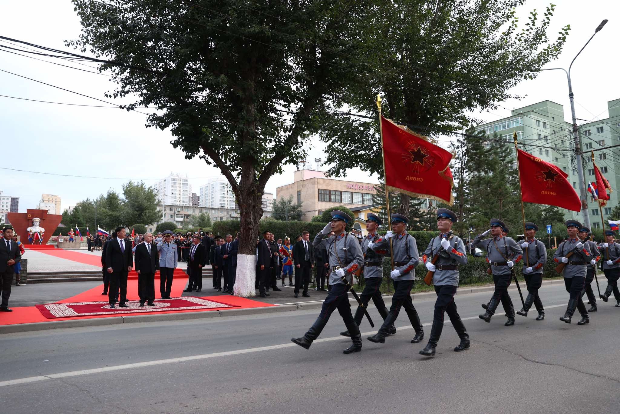 1939 оны Халхын голын байлдаанд оролцсон Монгол Ардын Хувьсгалт цэргийн дивиз, хороодын Байлдааны тугийг та харж байна. Түүхт ялалтын 85 жилийн ойн цэргийн ёслолын жагсаал болон ОХУ-ын төрийн тэргүүний түүхэн айлчлалын үеэр Зэвсэгт хүчний Хуурай замын цэргийн алба хаагчид эдгээр байлдааны тугуудыг сүр жавхлантайгаар ёслол төгөлдөр залан алхлаа.